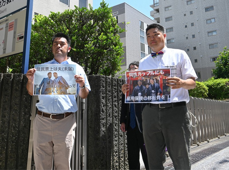 同性カップルを巡っては、最高裁が24年3月、犯罪被害者給付金の支給対象に事実婚状態の同性カップルも含まれるとの初判断を示した。松浦さんらの代理人の中川拓弁護士は提訴後の記者会見で「雇用保険法と同様の規定は他の社会保障関連法にも多くある。今回の訴訟を、同性カップルが社会保障を受けられるようにする突破口としたい」と説明。松浦さんは「LGBTQが制度上の不利益を受けていることを知ってもらい、人権保障について世論を喚起したい」、藤山さんは「社会保障からはじかれ、悲しい」と語った。
