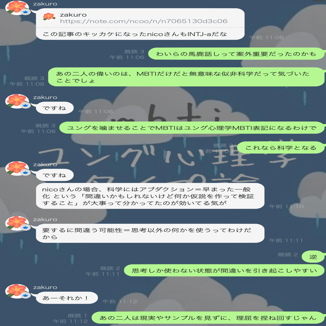 このやり取りで狗さんって人がこっちをビビってたのはこれかー。ユングを理解した上で、哲学その他各種学問を縦横無尽に応用自在にブンブン振り回してるから、そら怖いんちゃうってなるよね。ちな、狗さんってこういう人で、真面目で正直でいい人だから、喧嘩する気は最初からなかったけどw