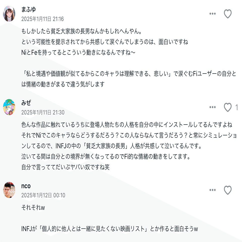 クスってなりましたけど、読む前から「この人萎縮してんなー」ってのは感じてましたね。理由はわからなかったんですが。というのも、自分の理論展開が当たり前って思ってる節があったんですよね。大手のnoteMBTIクリエイターやMBTI本を一切読んでなかったので、自分の立ち位置がわからなかったんですよ。