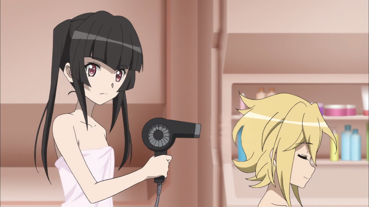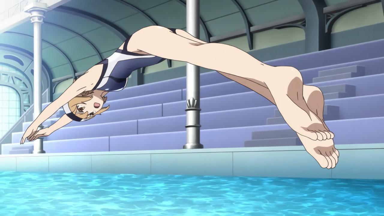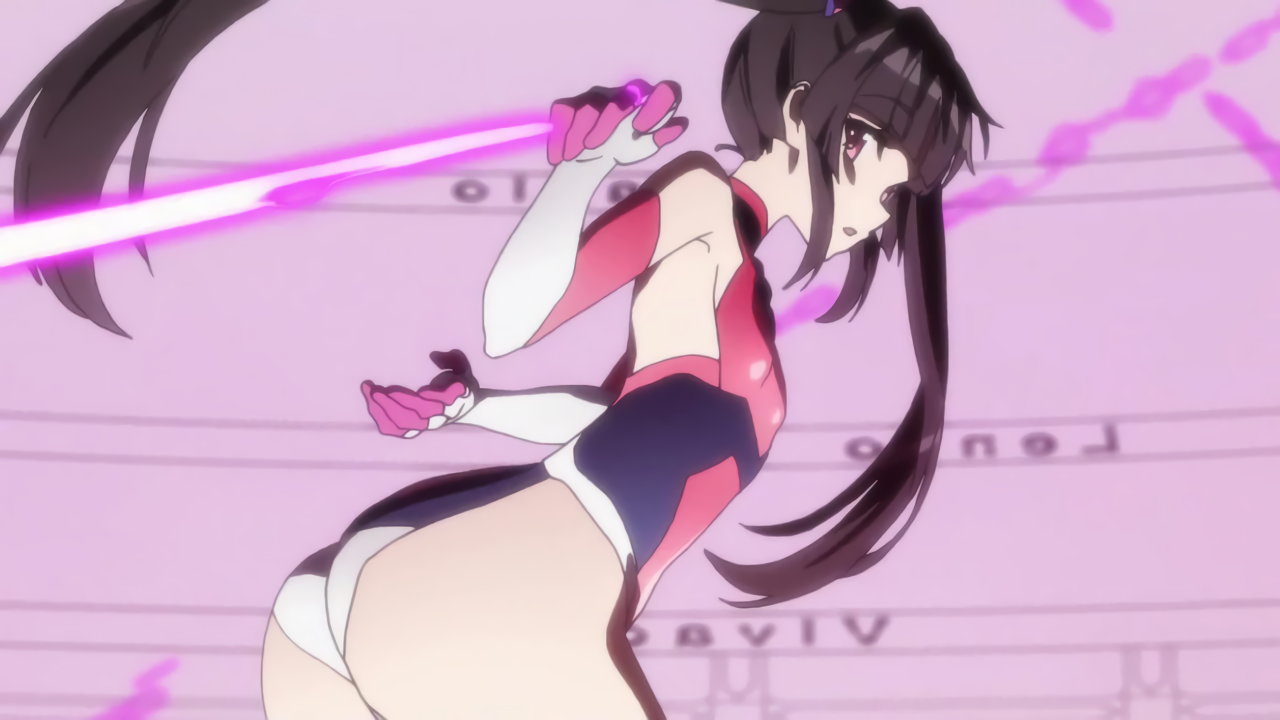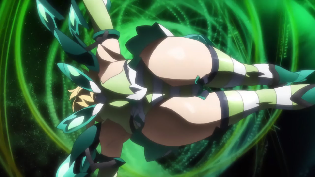 変身バンクシーンにて、尻と股間と縞パンを見せる切歌。