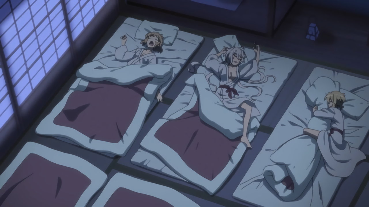 寝相が悪く、浴衣が開けた状態のクリス。