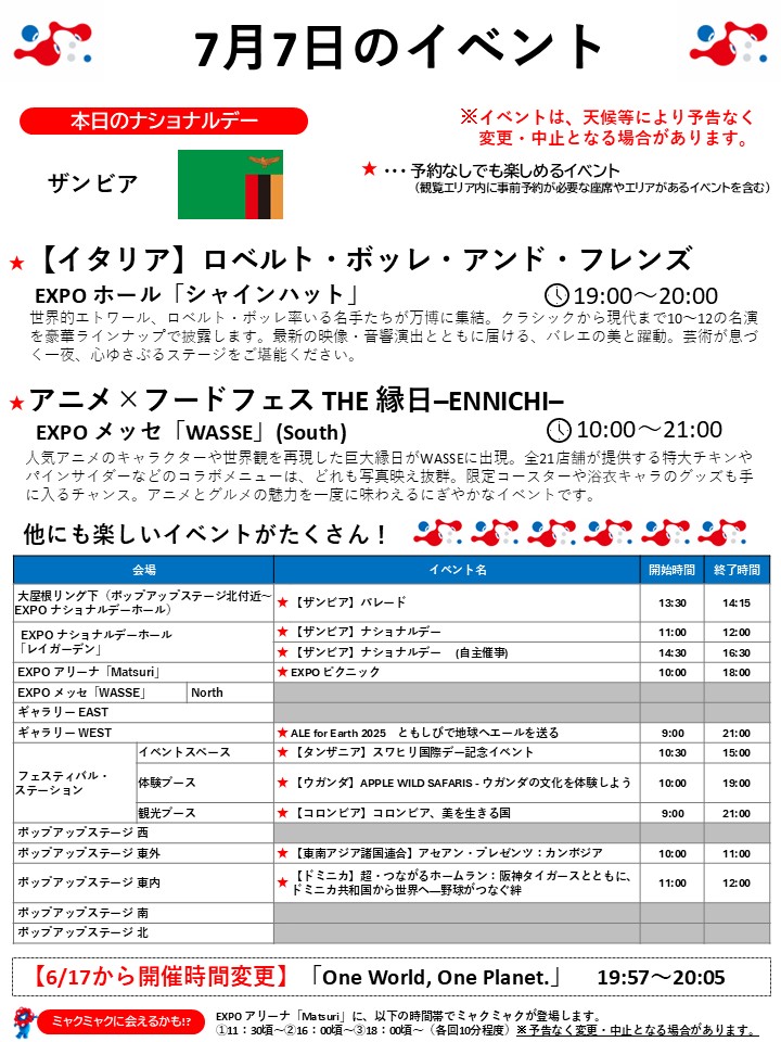 7月7日(月)の万博情報です