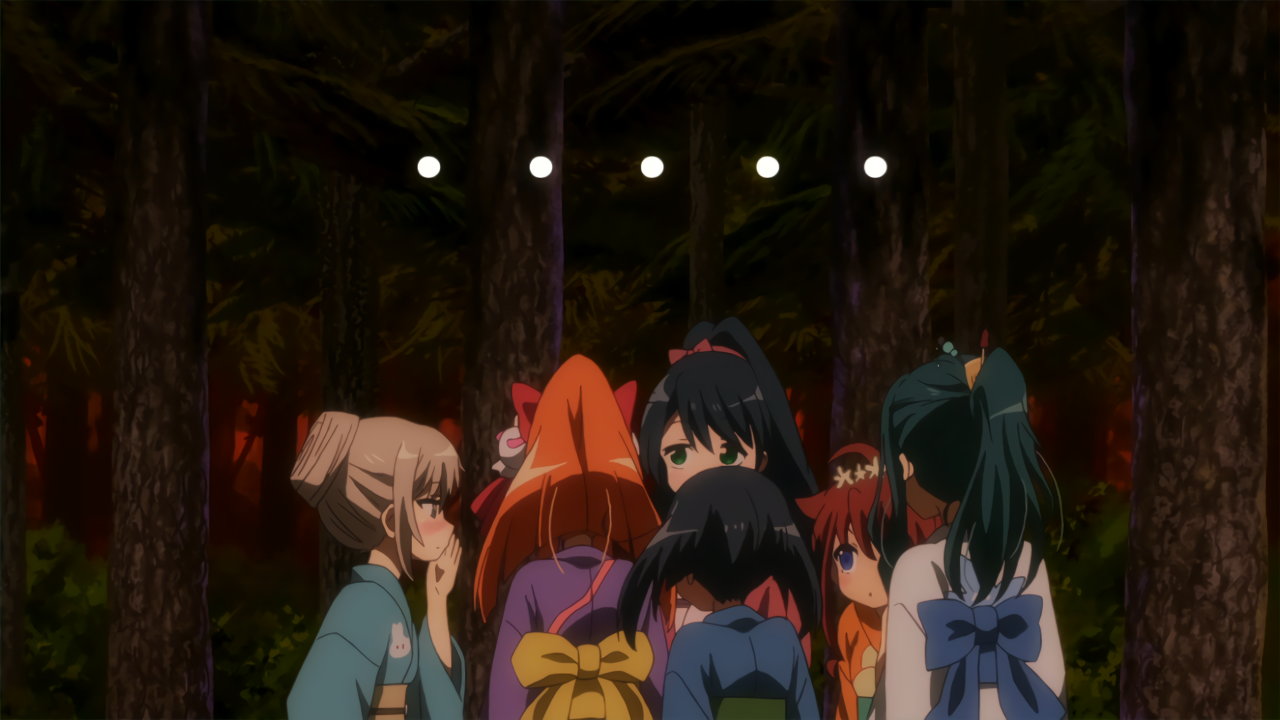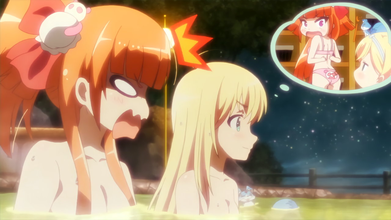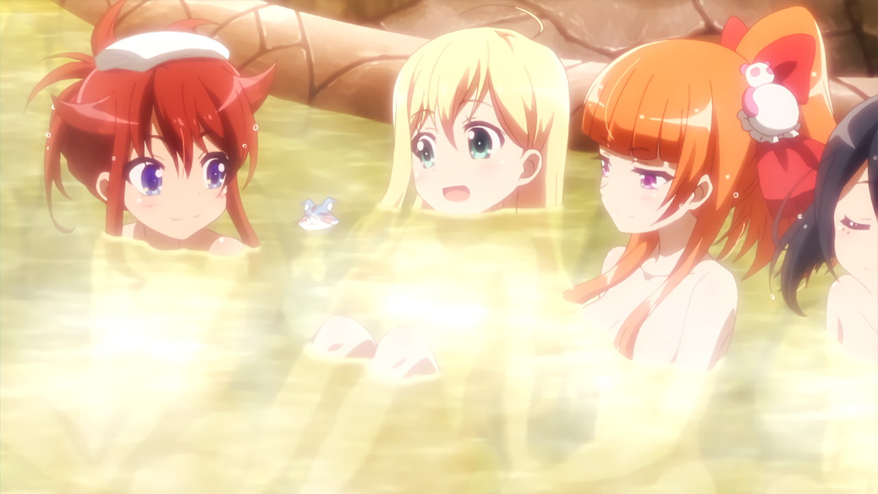 入浴中の華凛、華恋、ニーナ、リオン、夕子。
