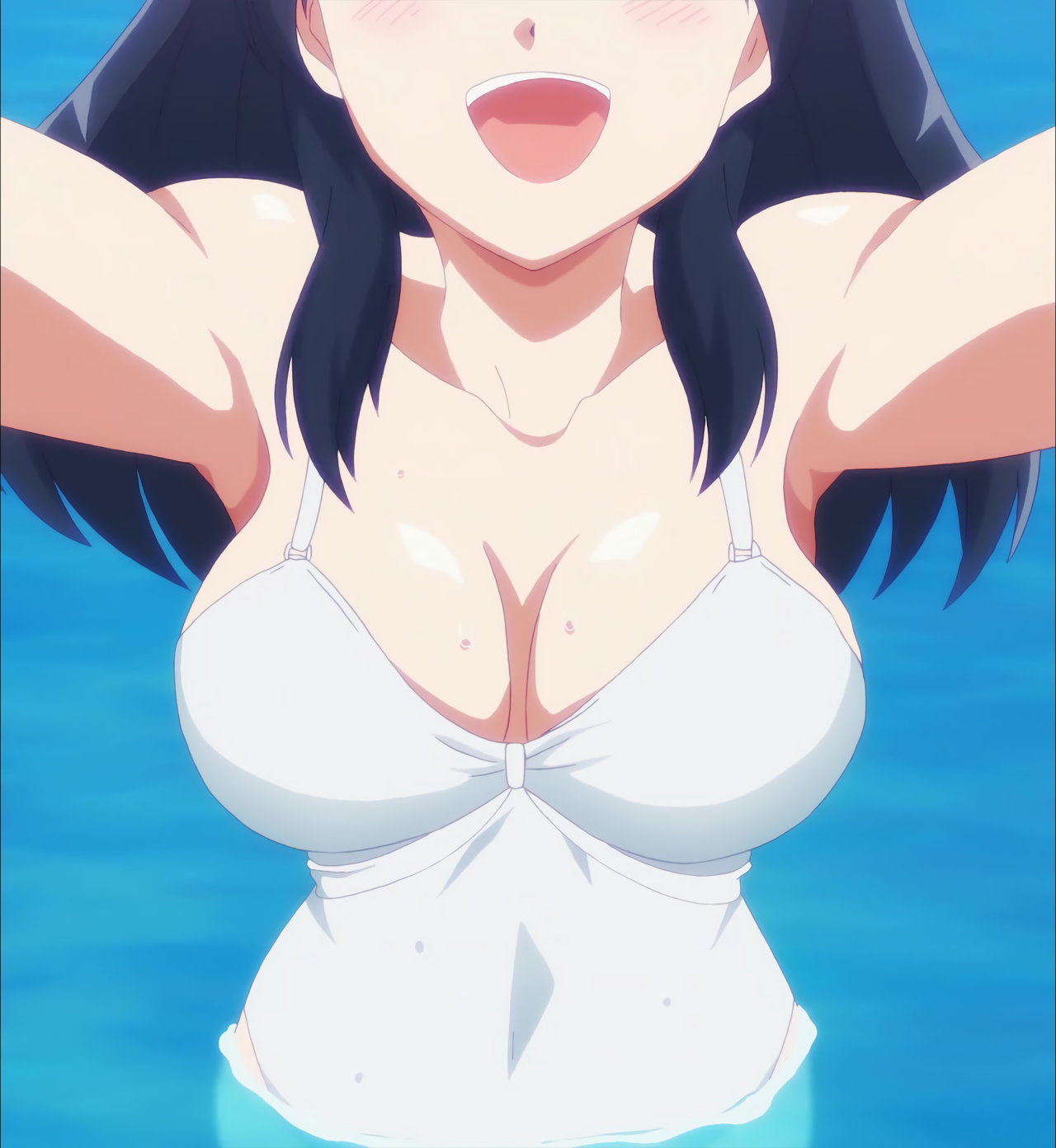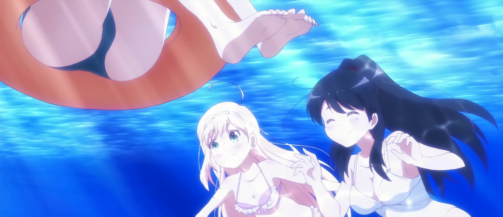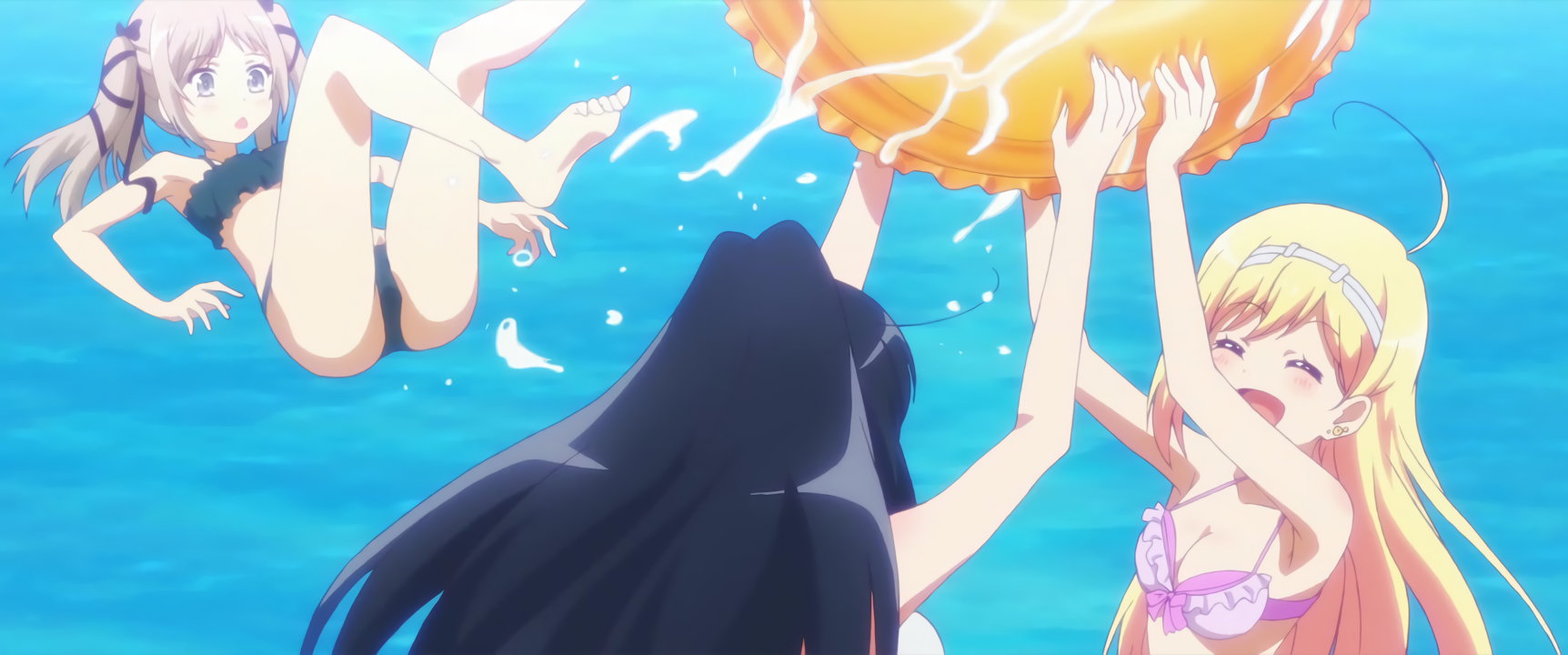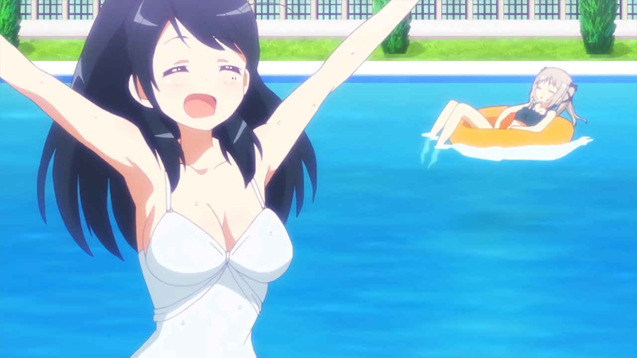 プールで戯れる、水着姿の女子たち。