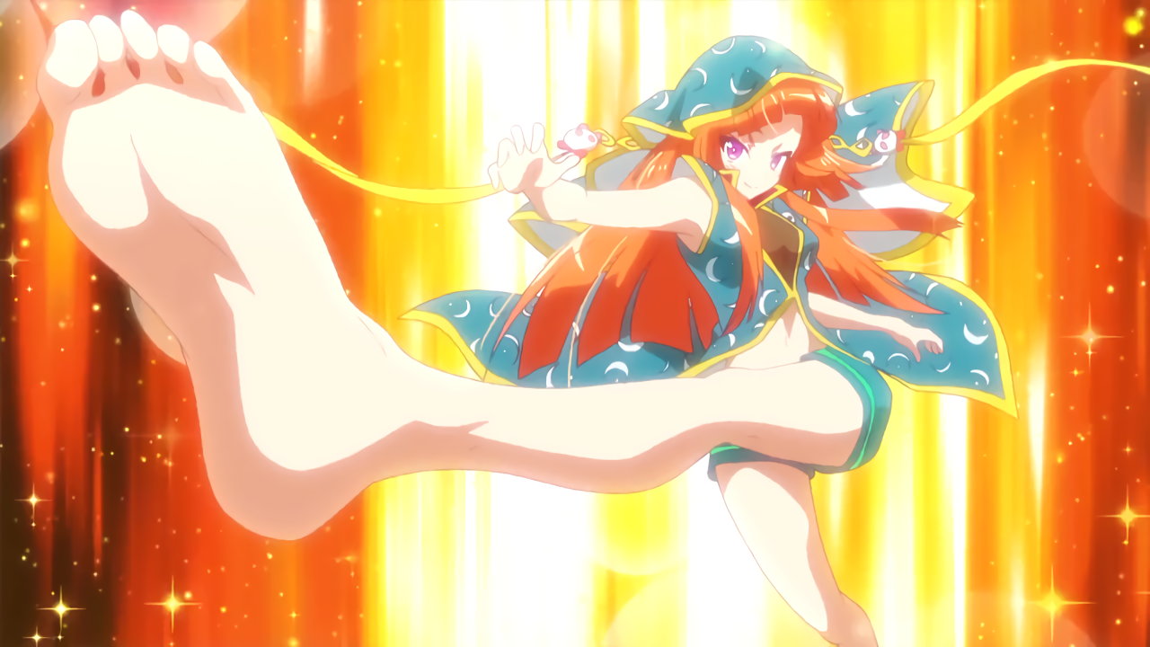 変身バンクシーンにて、生足裏を見せる弥生。