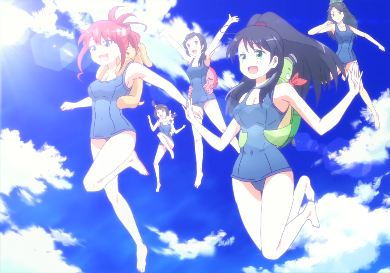 障害物競走・実技試験に挑む、スクール水着姿の女子生徒たち。