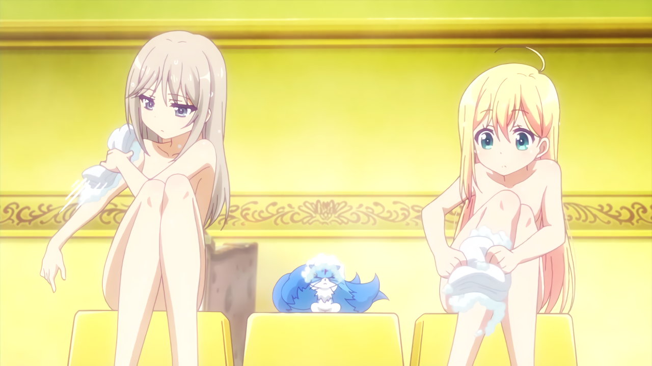 入浴中のリオン、弥生、ニーナ。