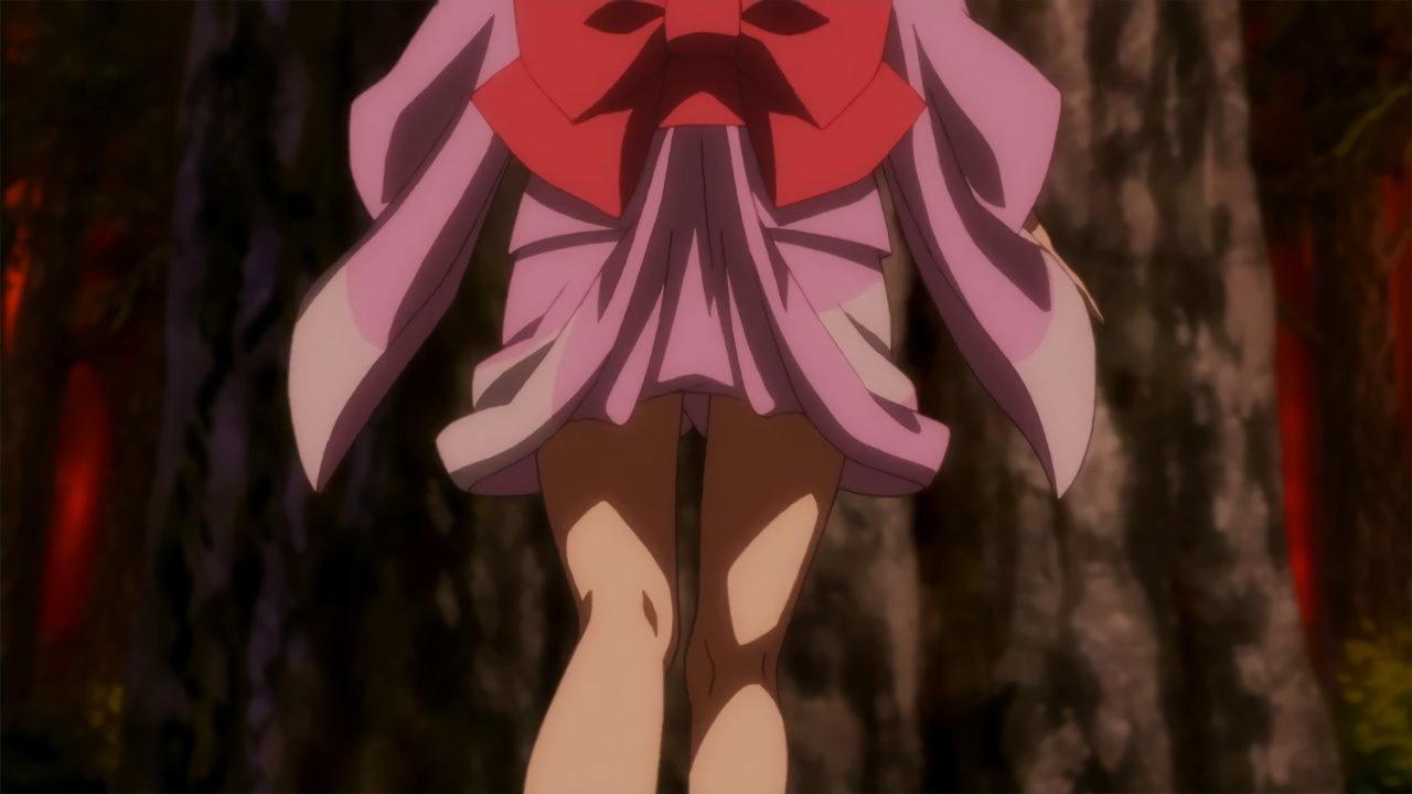 盆踊り中、浴衣の裾から生脚太腿を見せるリオン。