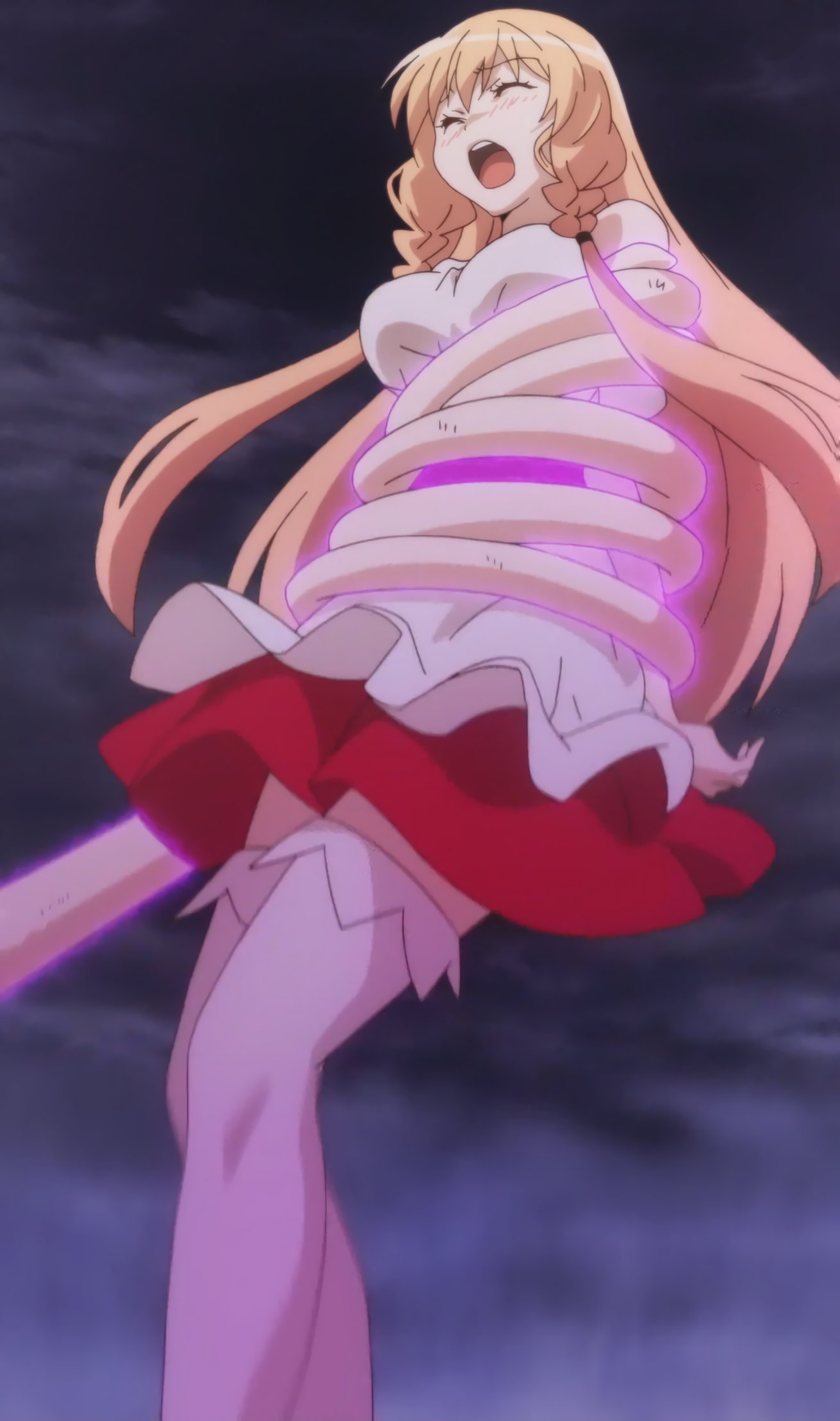 魔王に触手拘束され、悶えるリリエッタ。