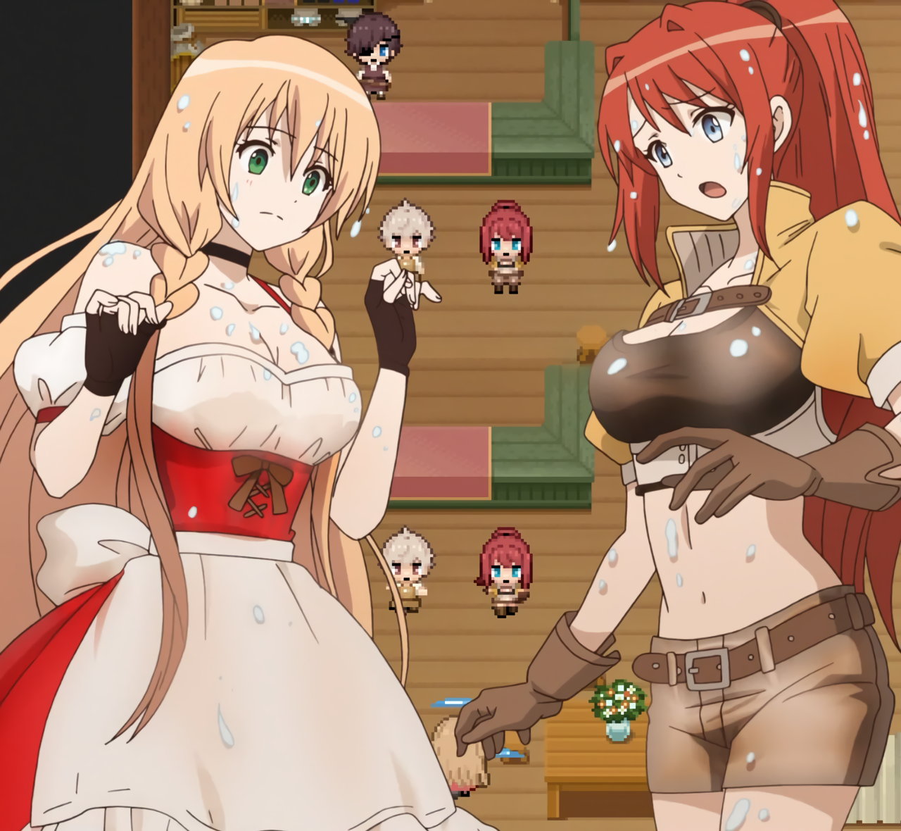 白濁液(スライムの破片)塗れのリリエッタとフレアリカ。