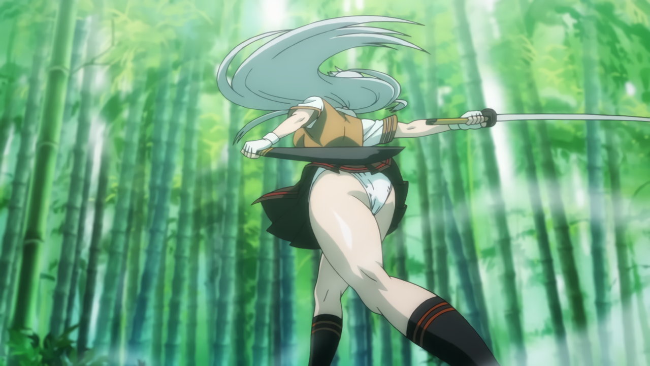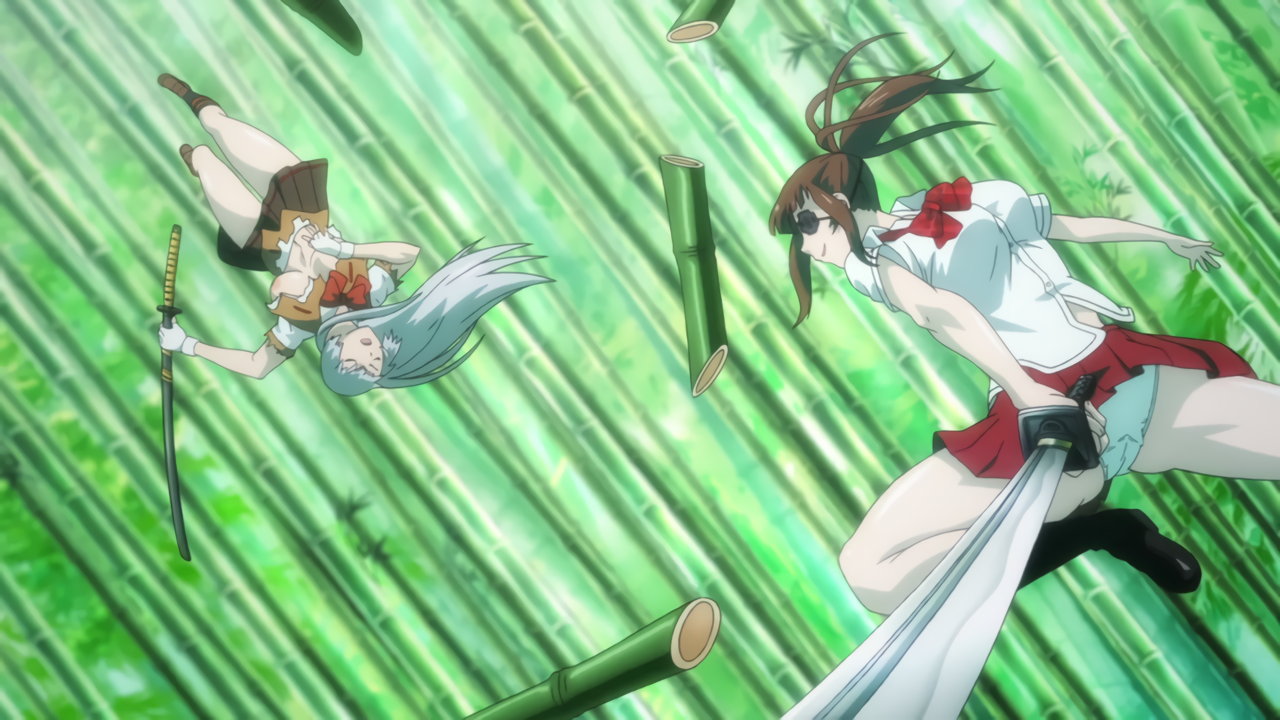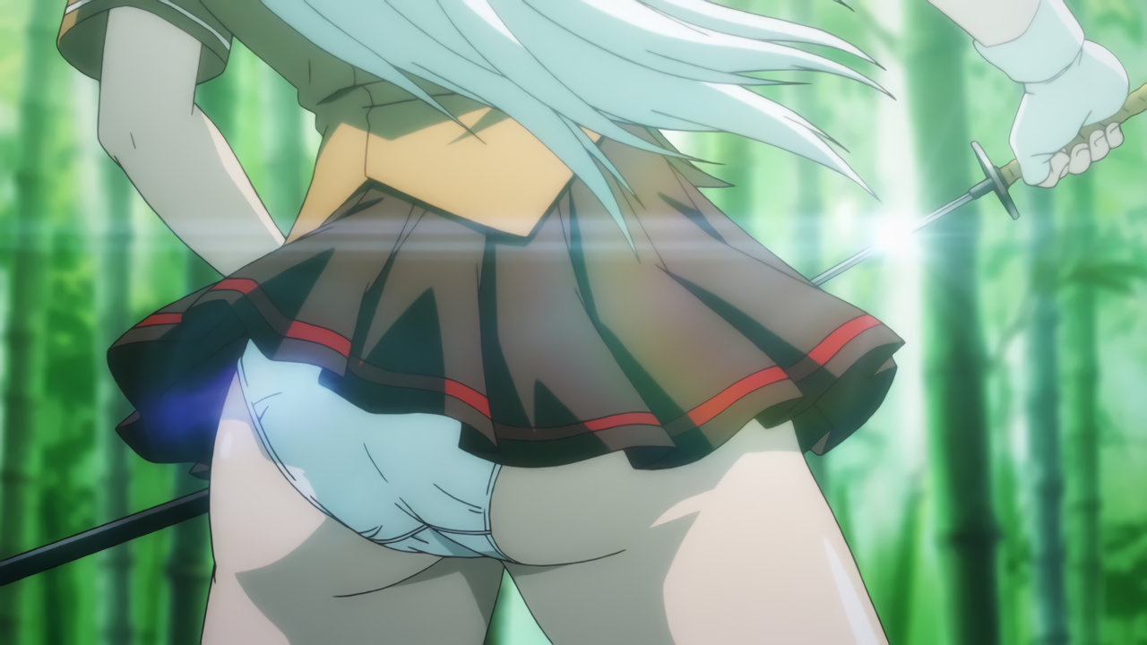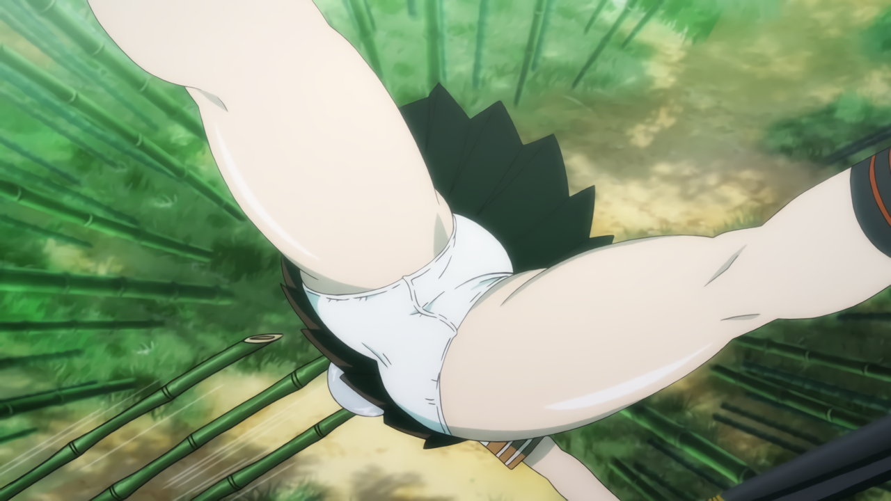 竹藪にてパンチラしながら剣戟する、趙雲と三厳。