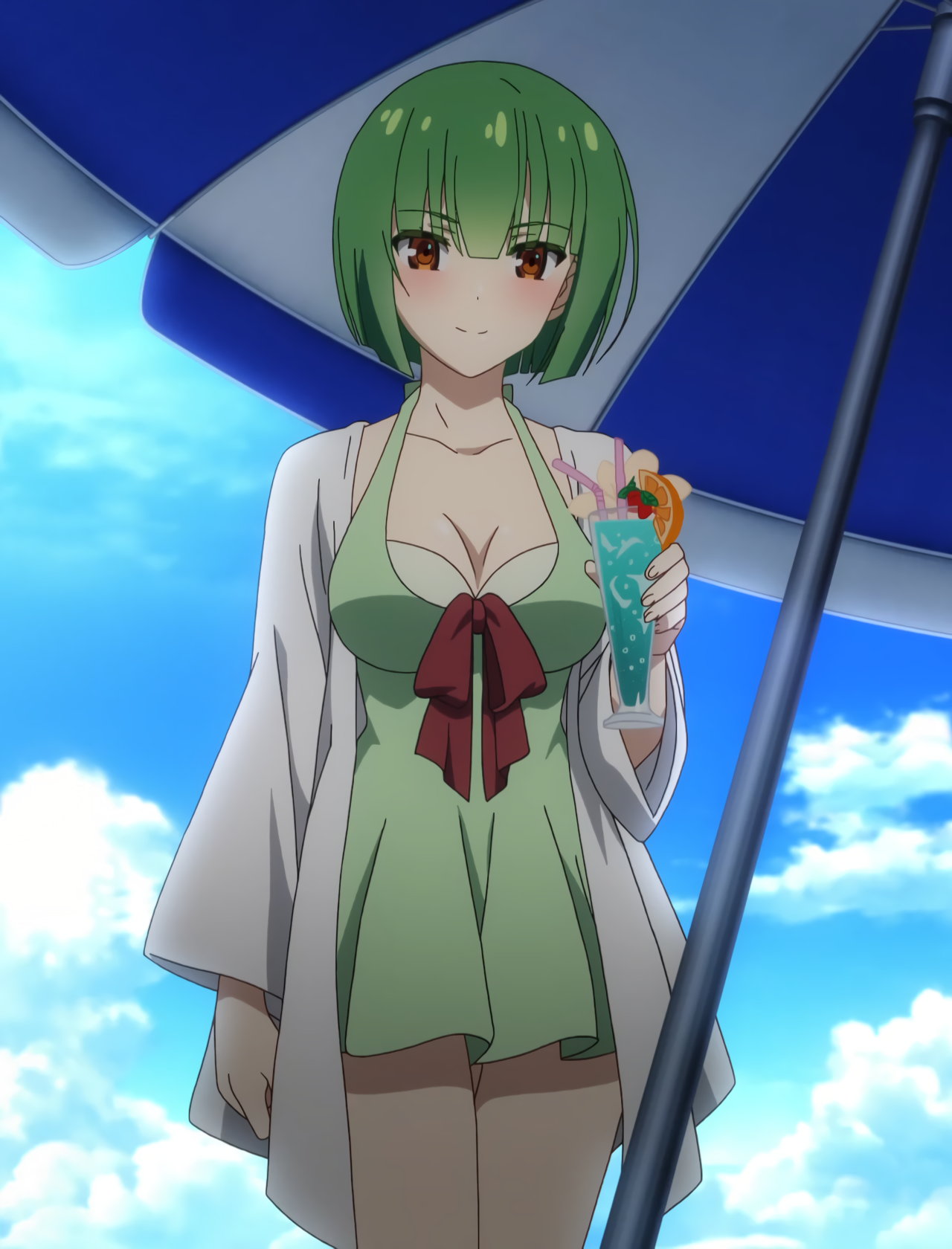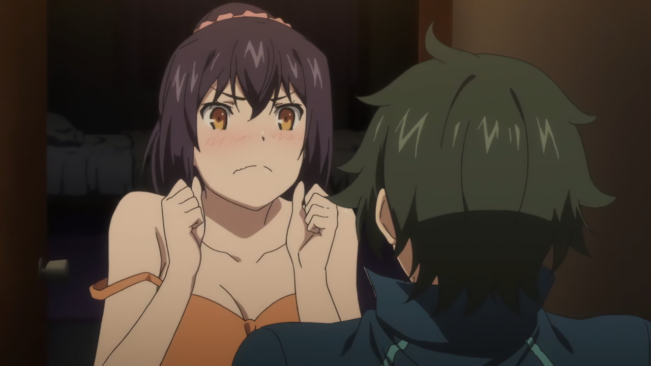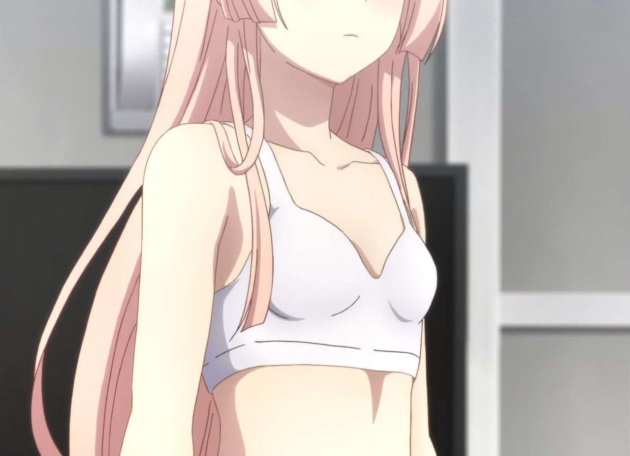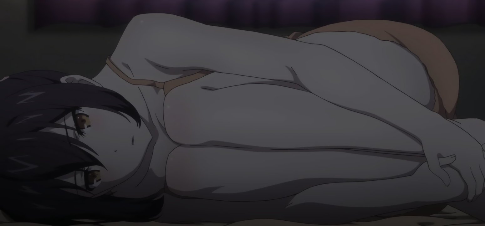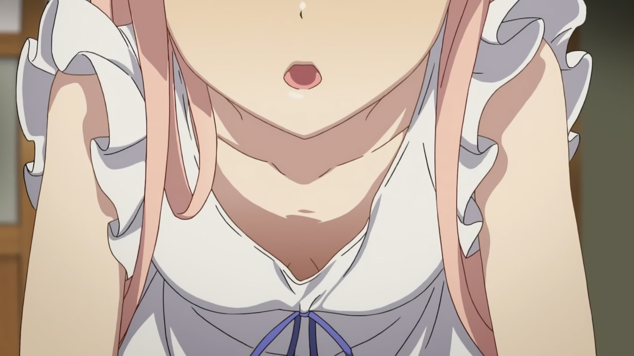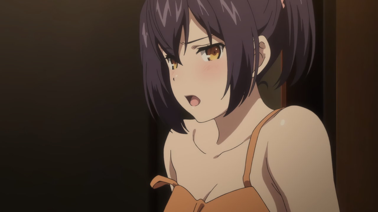 慧に口説かれて動揺し、肩紐がずれる明華。