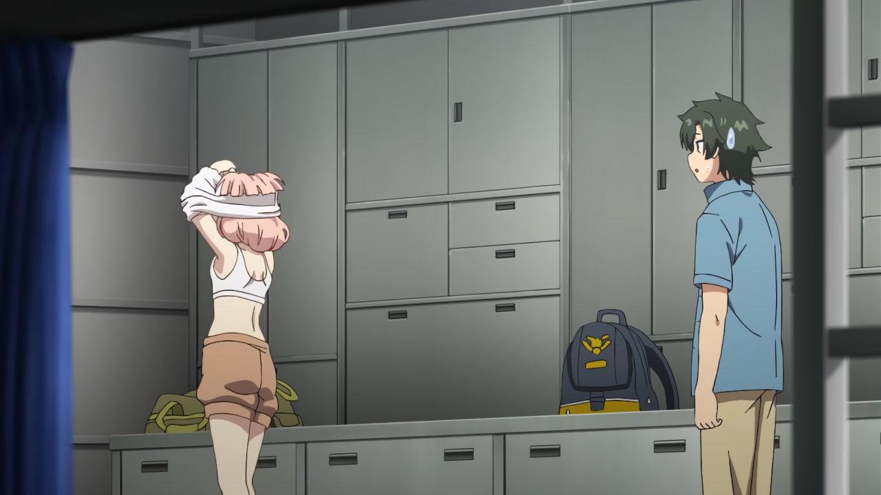 慧の側で、ジャージのズボンを脱ぐグリペン。