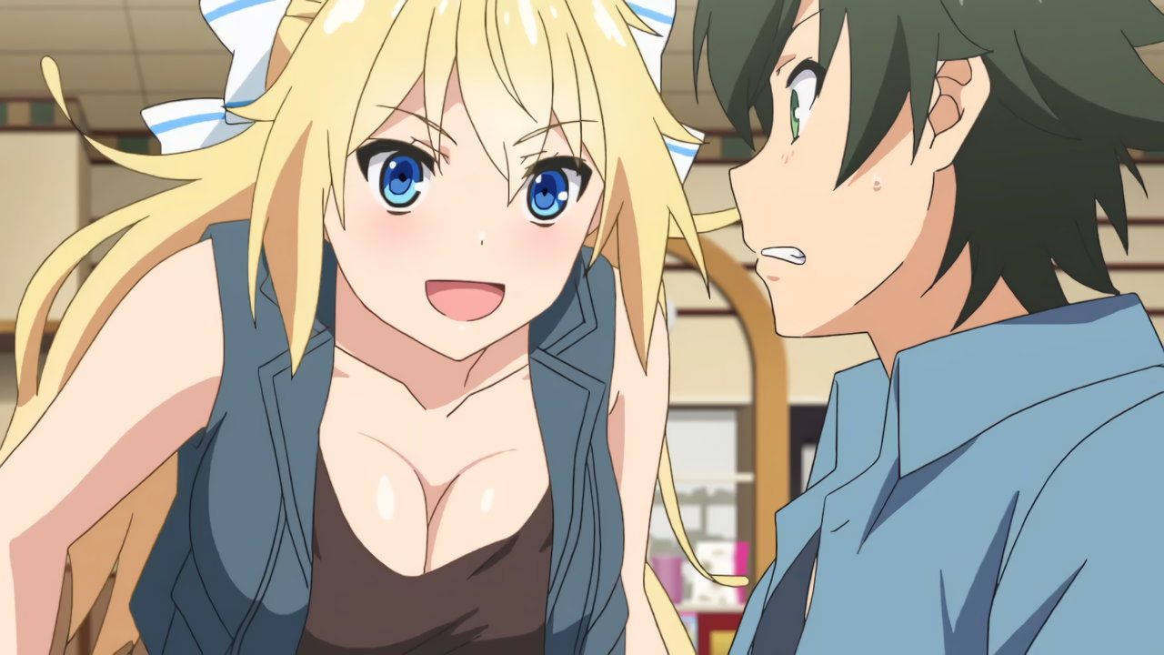 身を乗り出して慧に迫り、胸チラするグリペン。