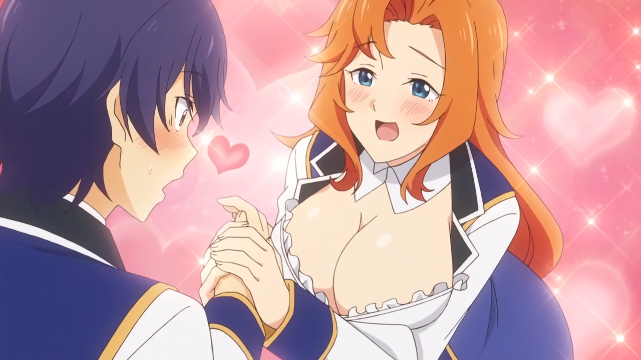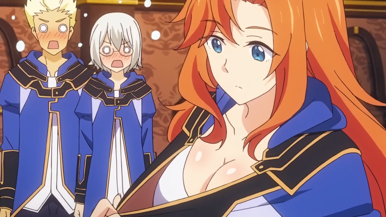 アウグストに抱きつくメイ。直後、エリザベートの巨乳に圧迫される。