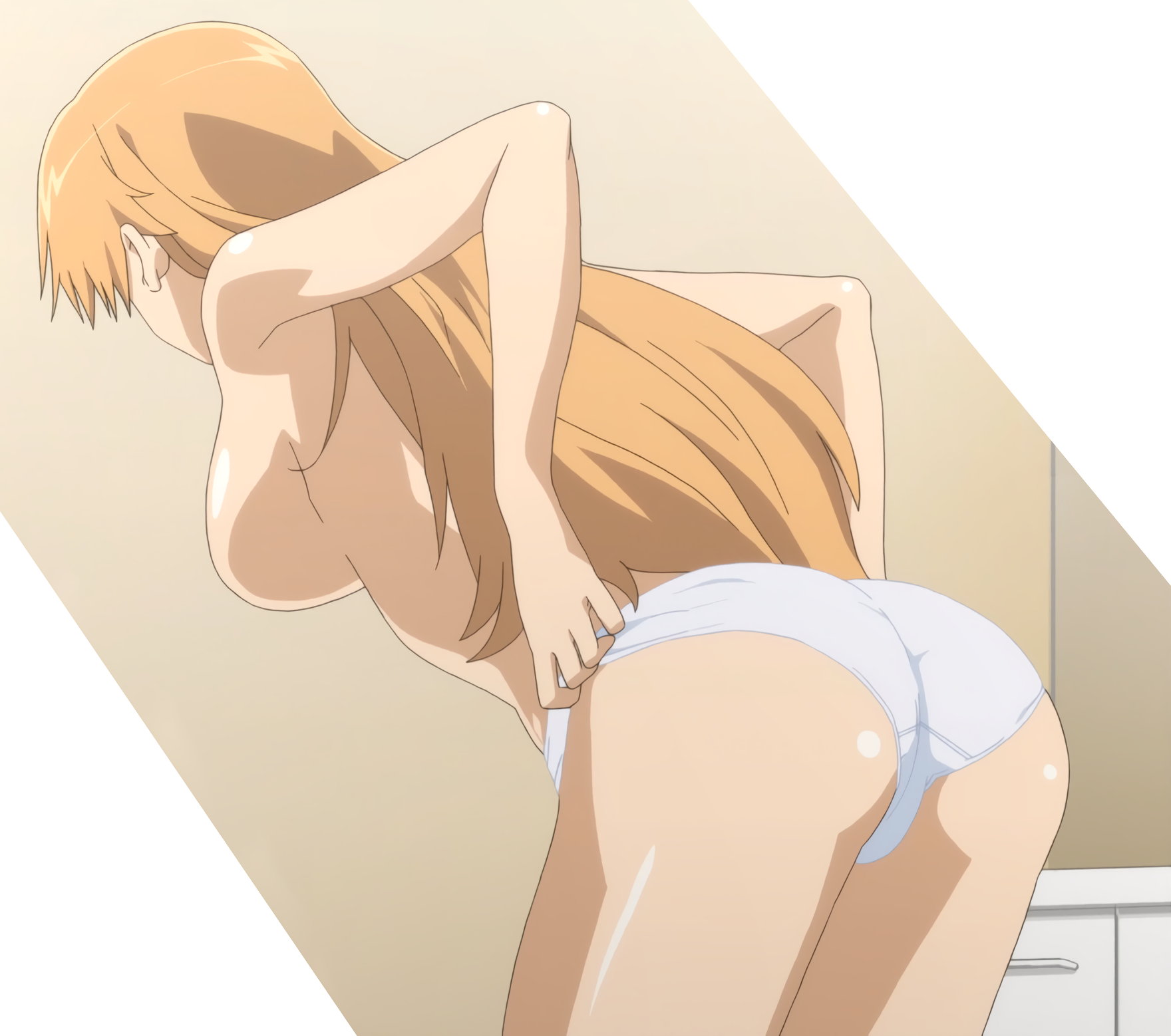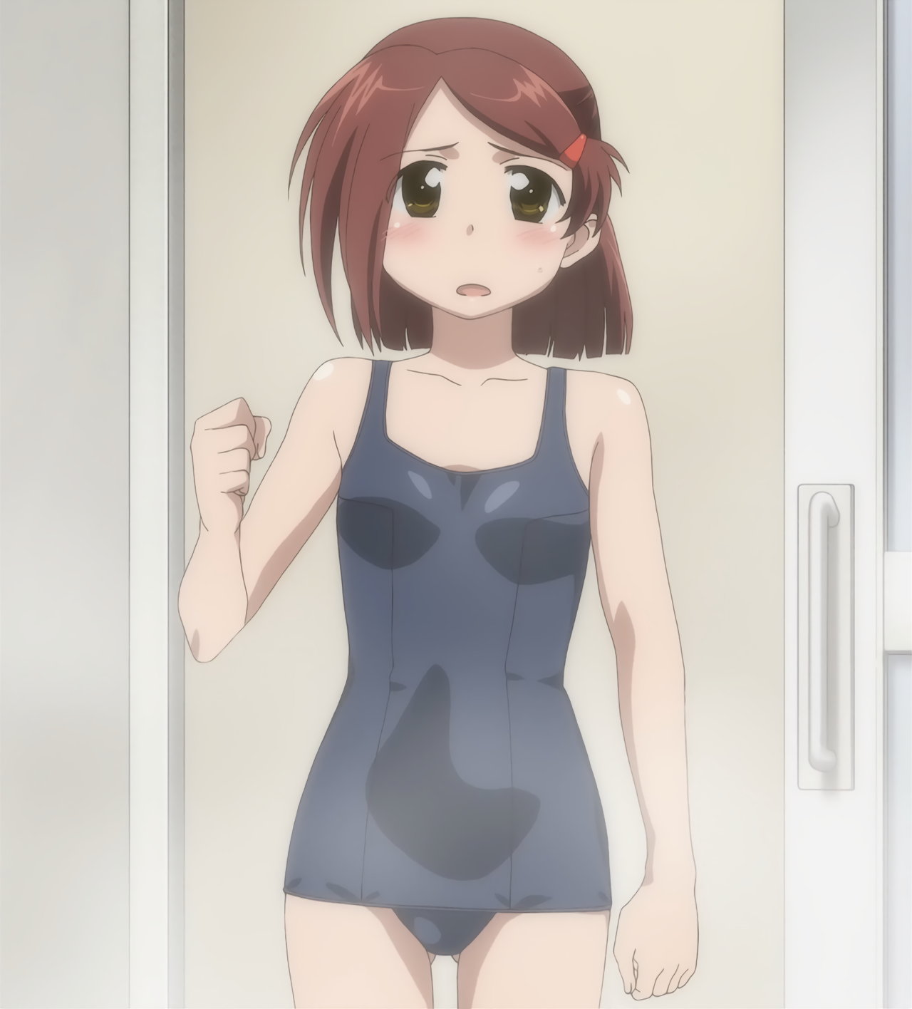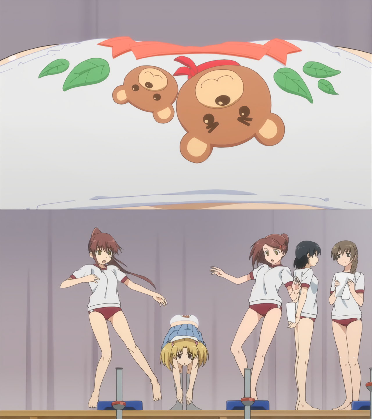 圭太に尻を見せる、スクール水着姿の三日月。