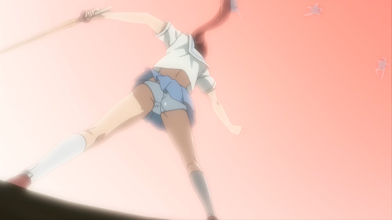 パンチラしながら竹刀を振る、りこ姉。