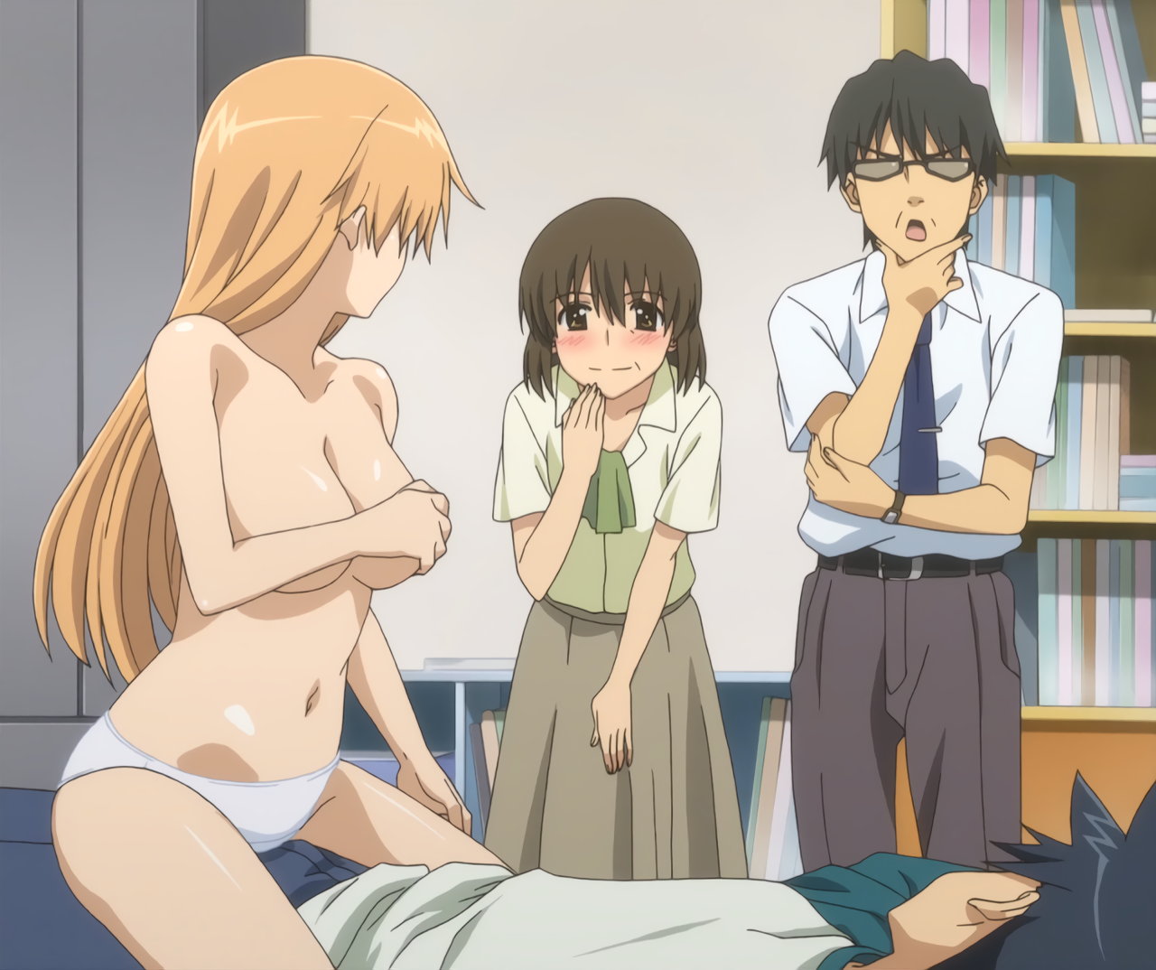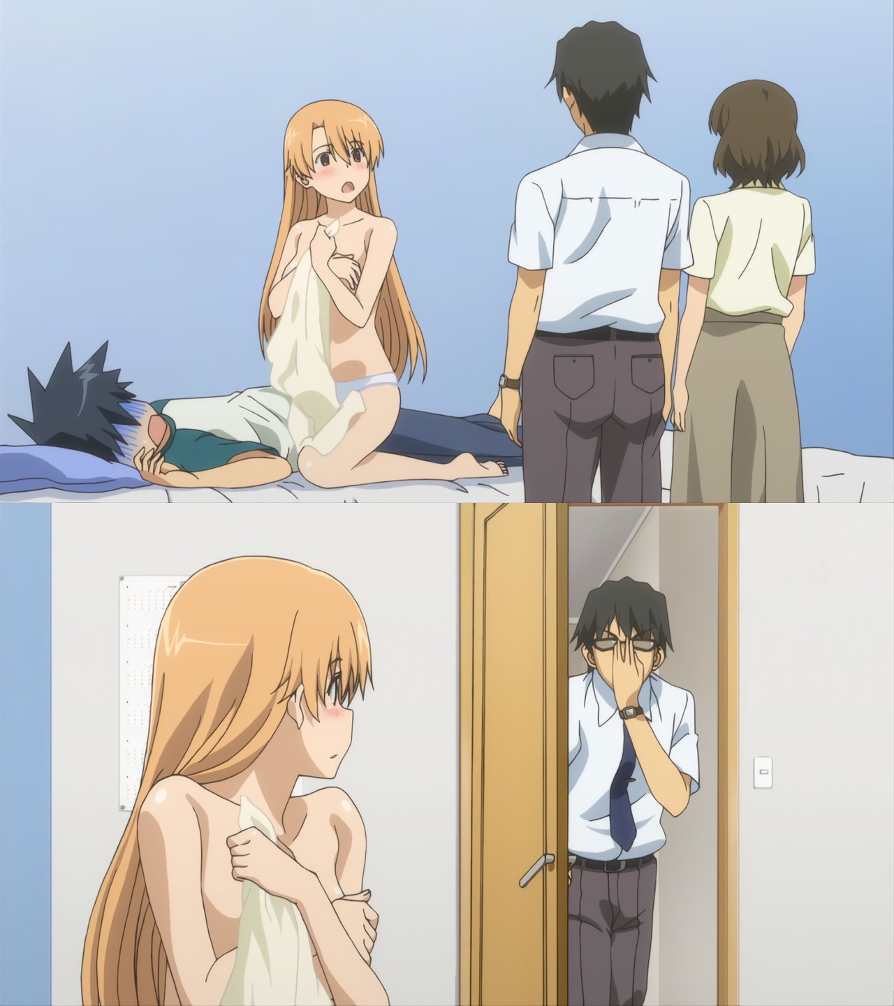 第10話B:手ブラ・上半身裸の美春・夕月。