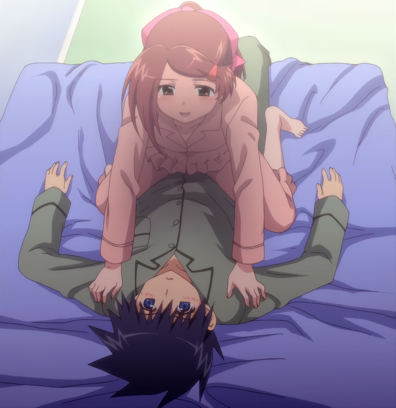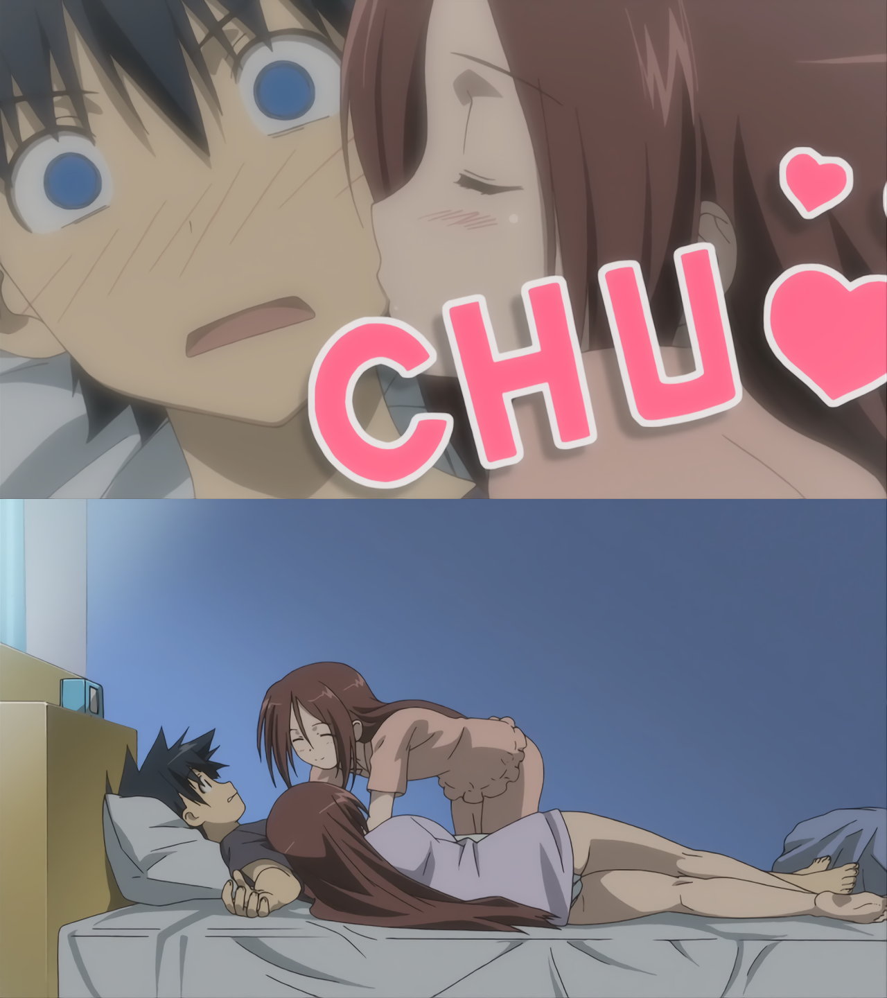 圭太に寝起きのモーニングキスをする、あこ姉。
