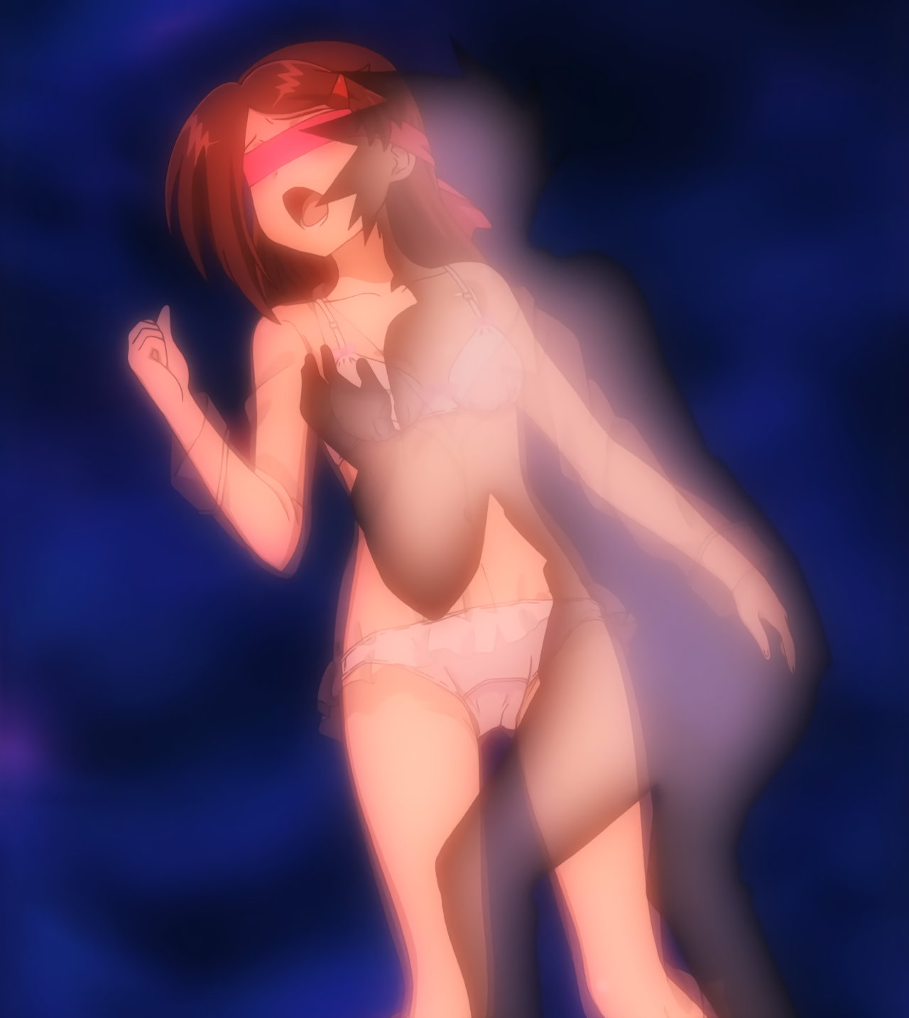 第11話A:下半身裸のあこ姉。上半身ブラジャー姿のりこ姉。