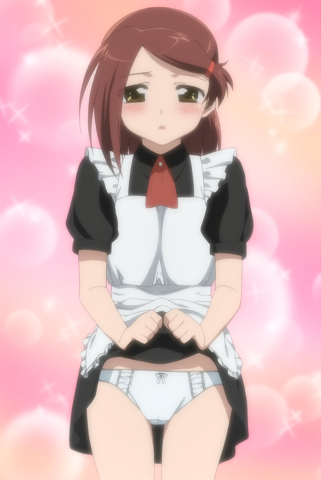 スカートを捲りパンツを見せる、メイド服姿のあこ姉。