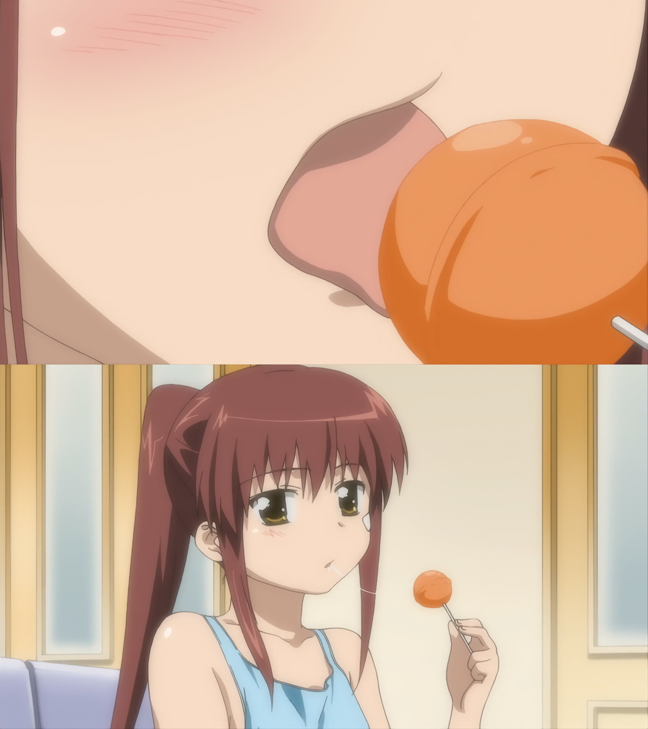 棒付き飴を舐めるりこ姉。