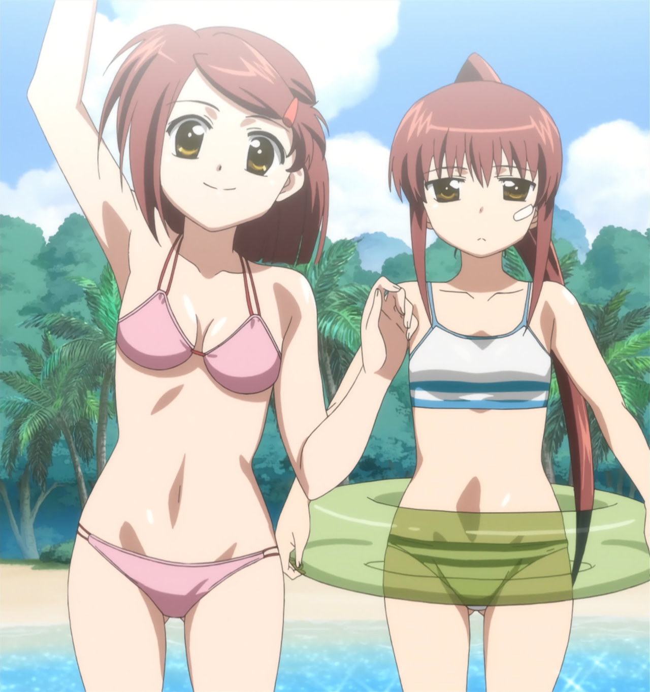 第0話A:水着姿のあこ姉・りこ姉。