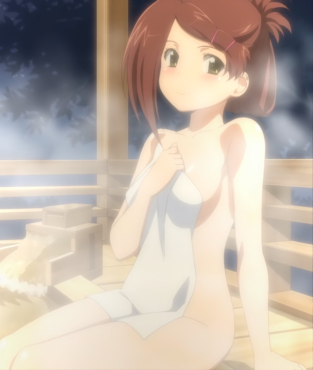 入浴後、裸バスタオル姿の女子たち。