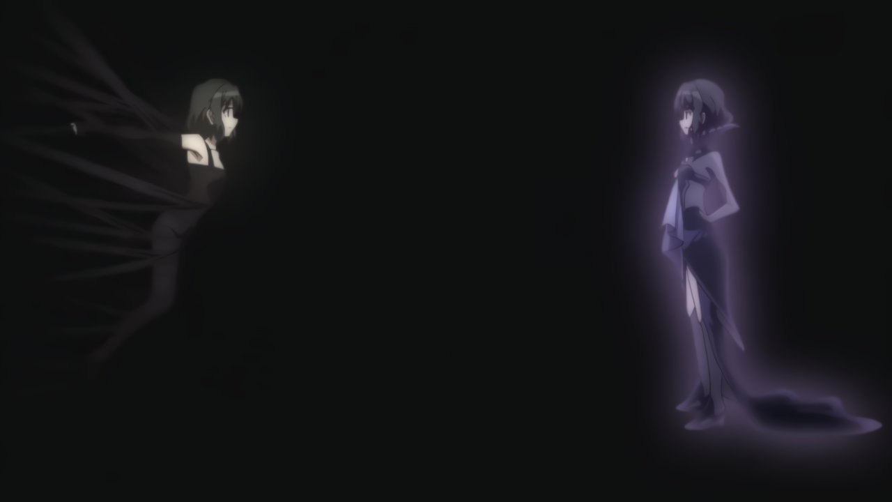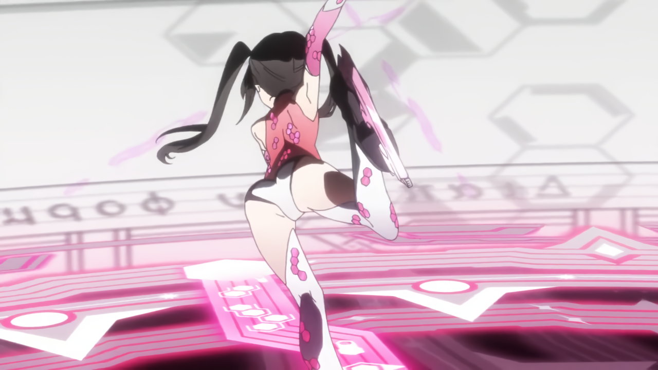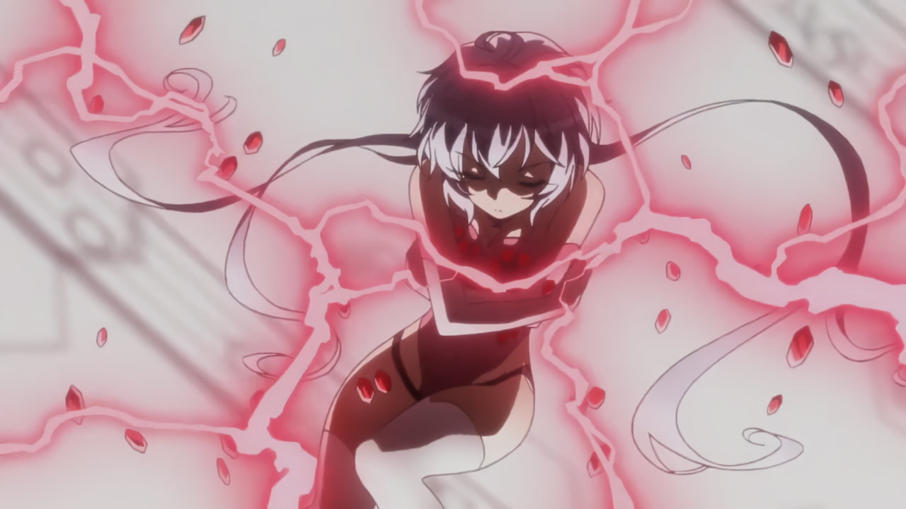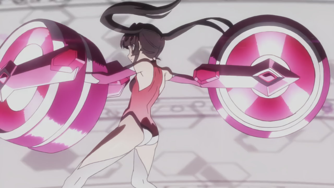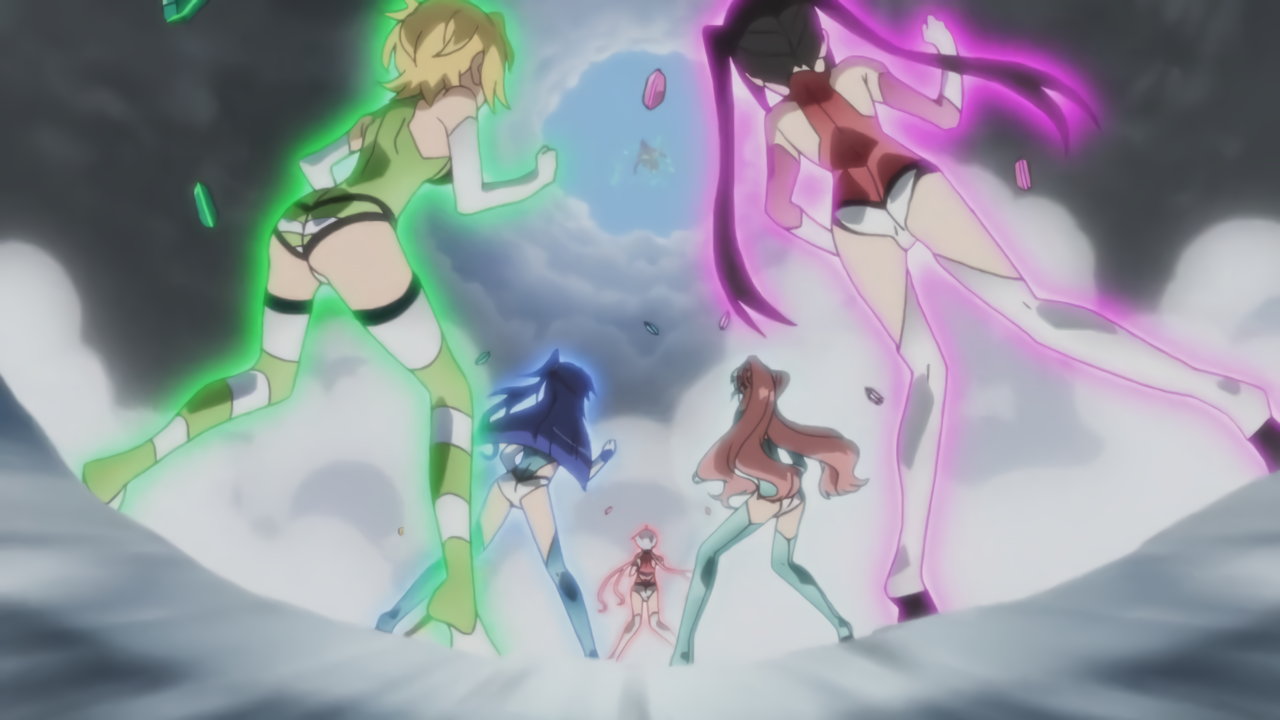 切歌の変身バンクシーン。パンチラしながらポールダンスしているように見える。