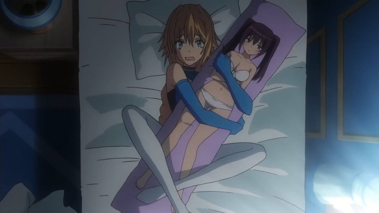 ビキニ山猫の抱き枕を抱える団長。