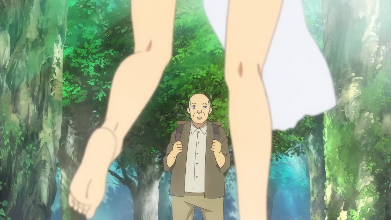温泉に入ろうとするクーピー。しかし、通りすがりの翁に呼び止められる。
