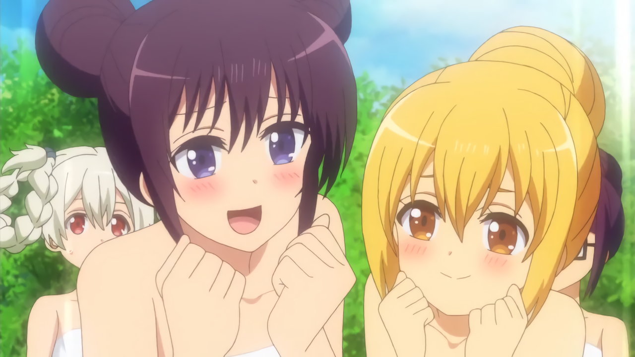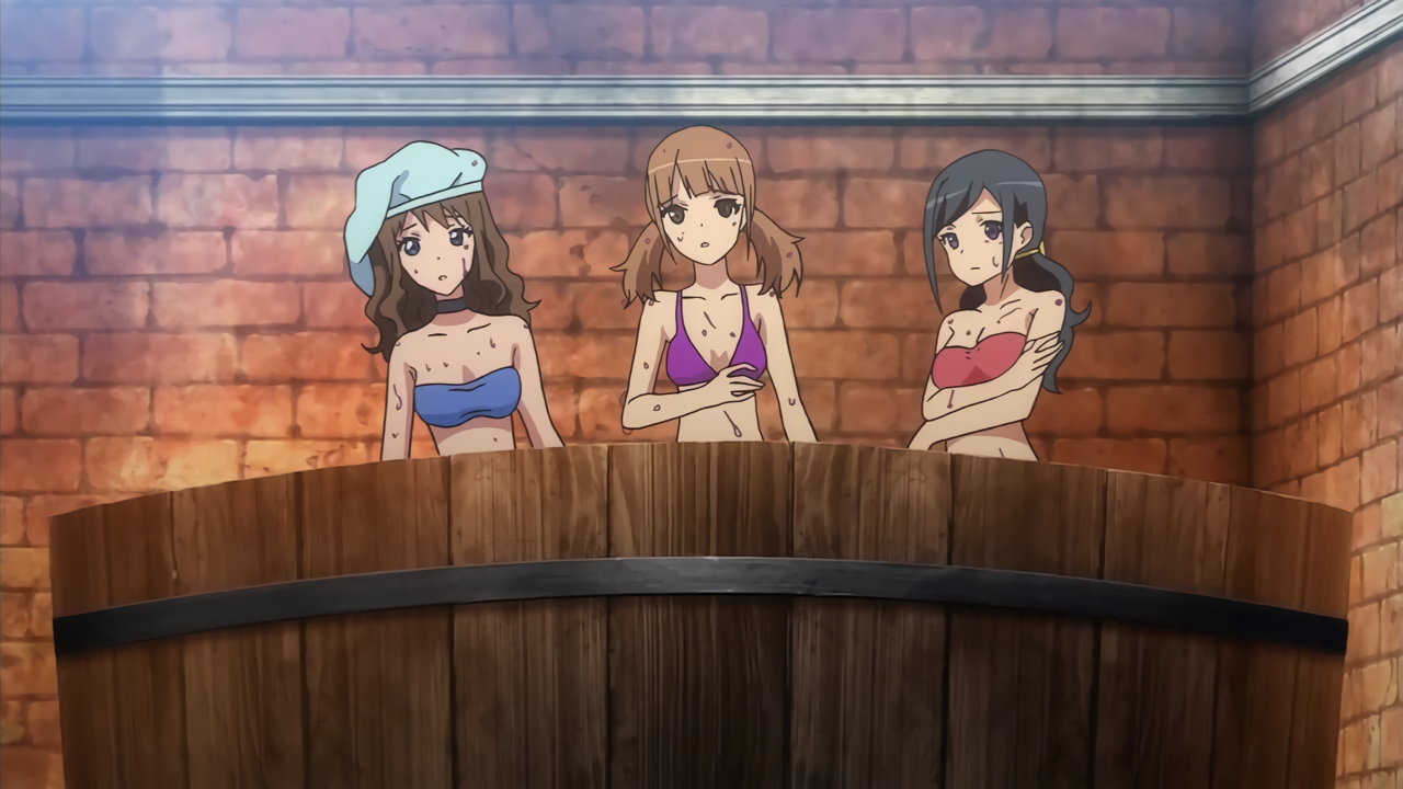 入浴中のブリギッテ、ティターニア、ナックラヴィ、ベトール。