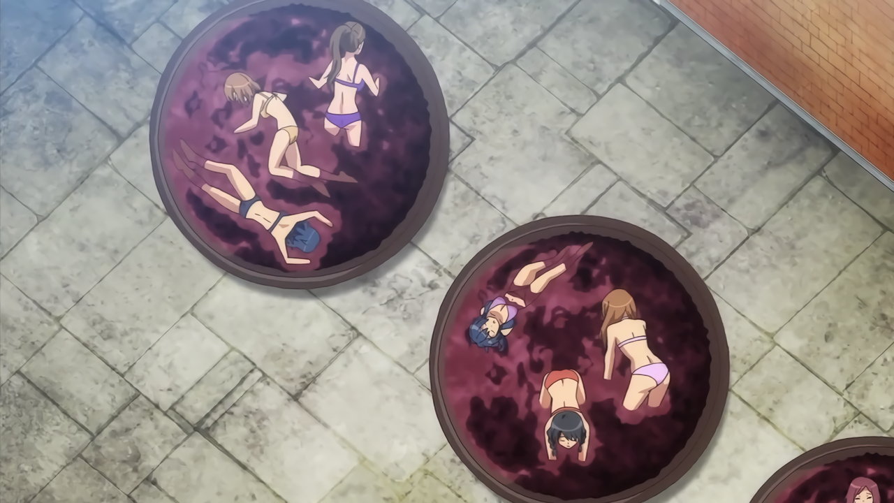 女体搾りワイン製造に従事する水着女子たち。