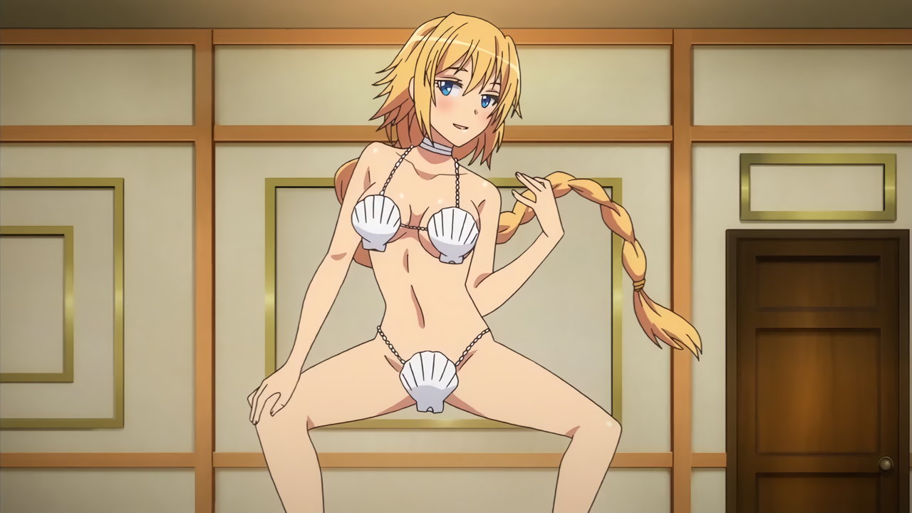 ドスケベ貝殻水着姿を披露する団長。