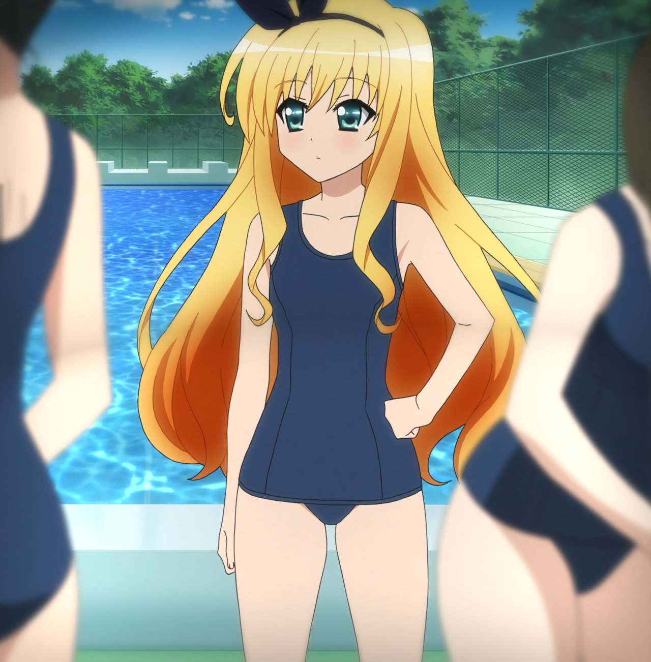 スクール水着姿の美緒。