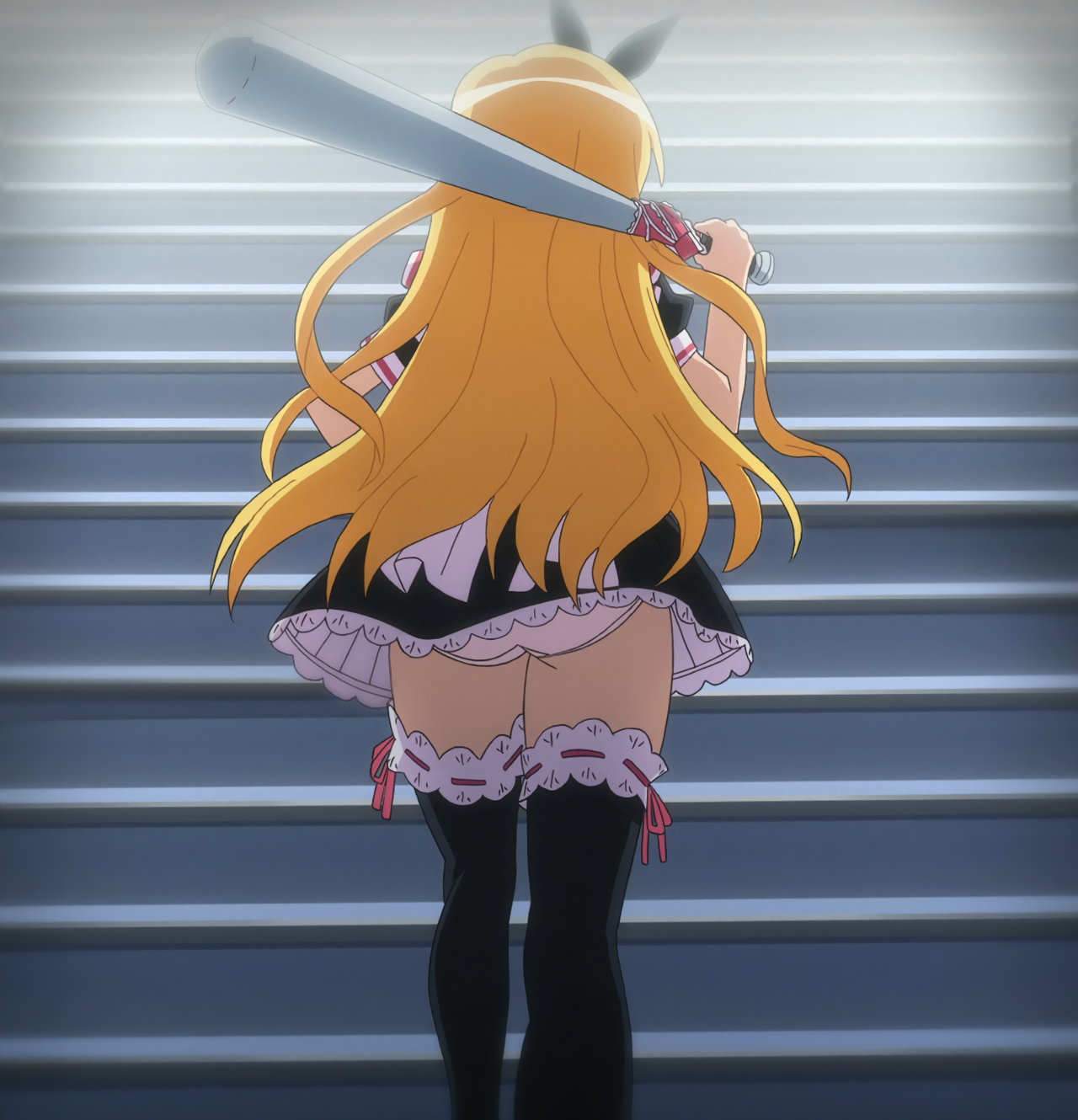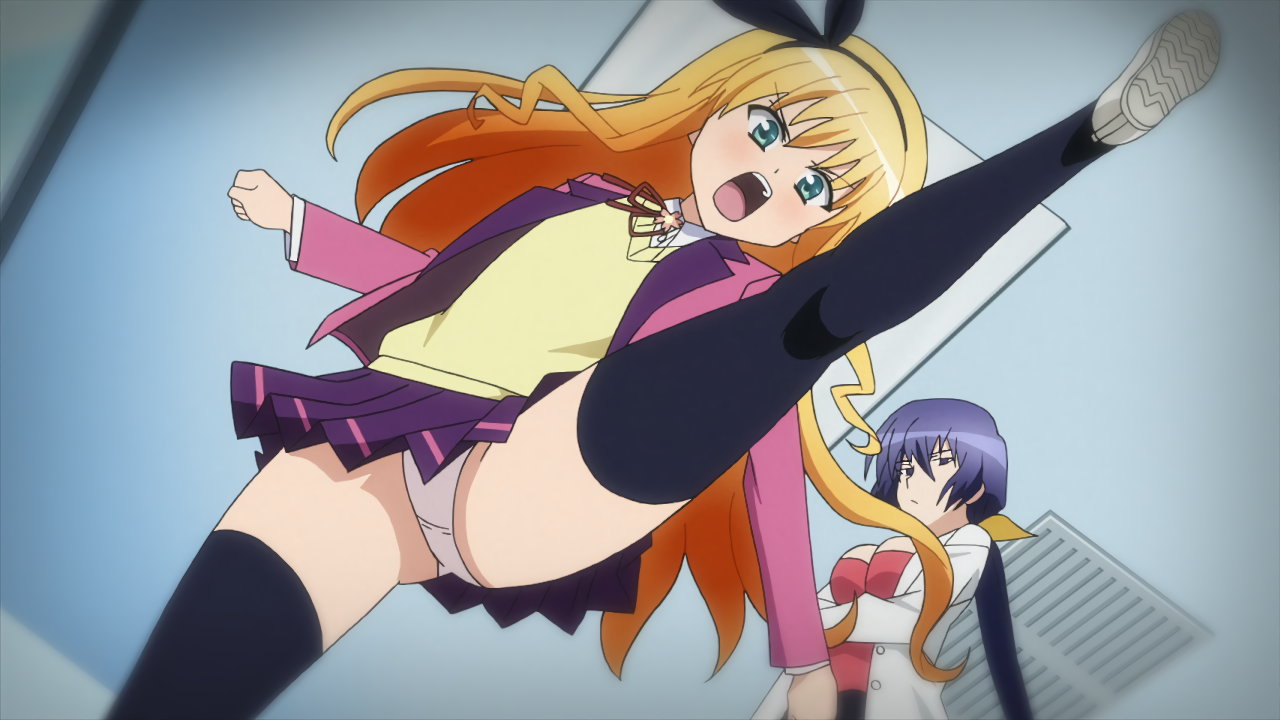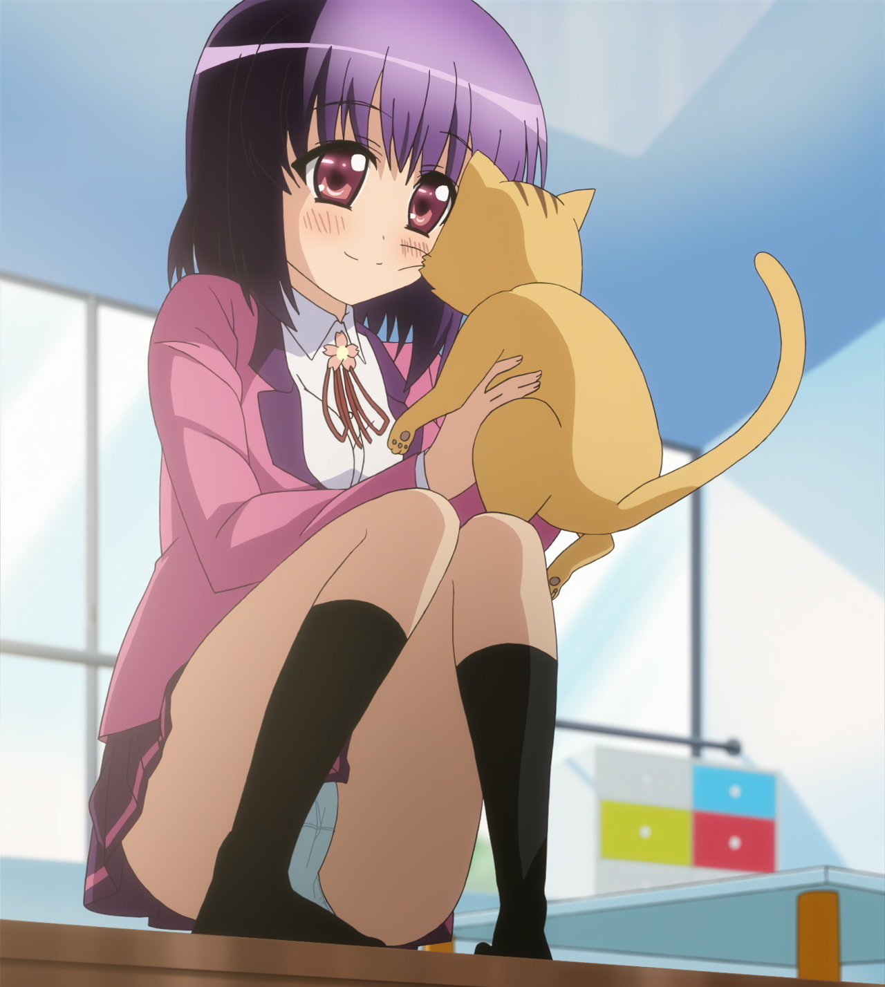 パンチラしながら猫を抱く嵐子。