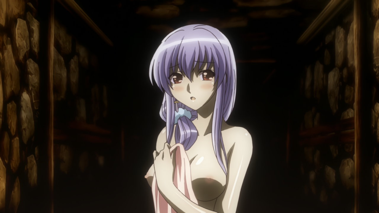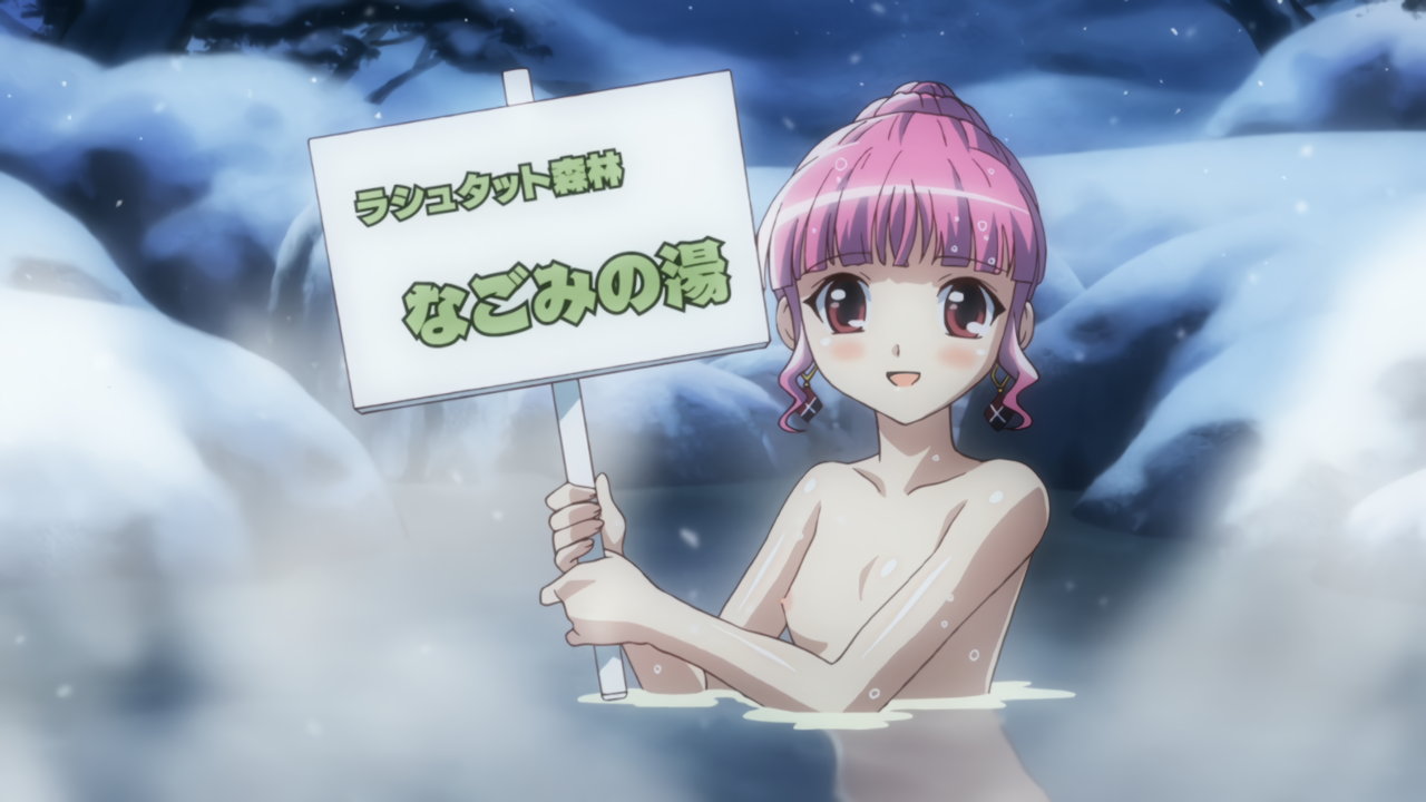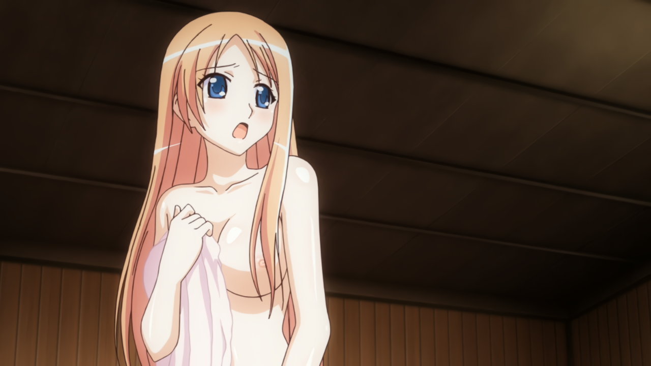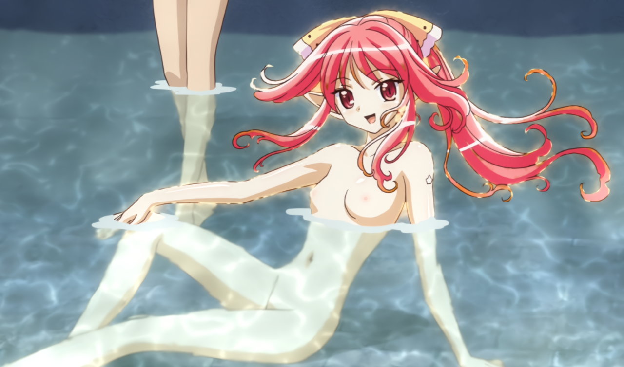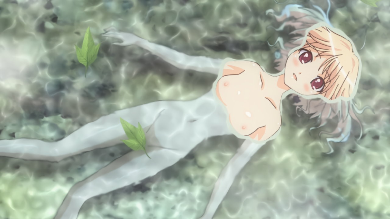 温泉に浮かぶ全裸アニエス。
