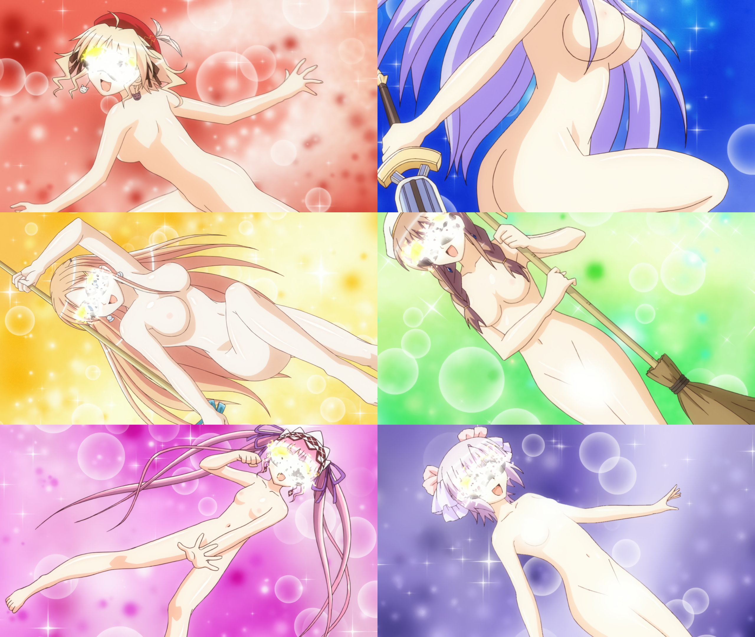 正義役ヒロインたちの全裸変身バンクシーン。