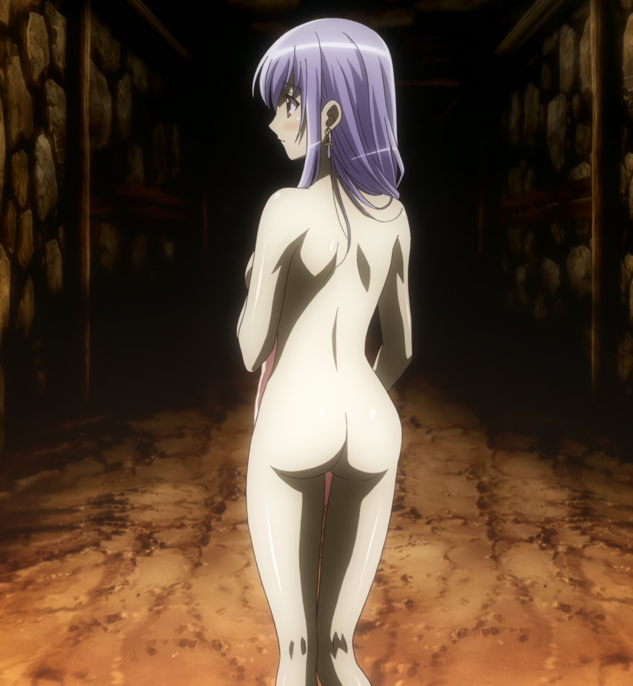 滝に打たれる全裸アニエス。