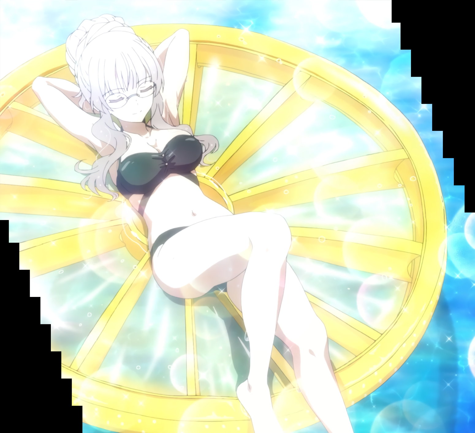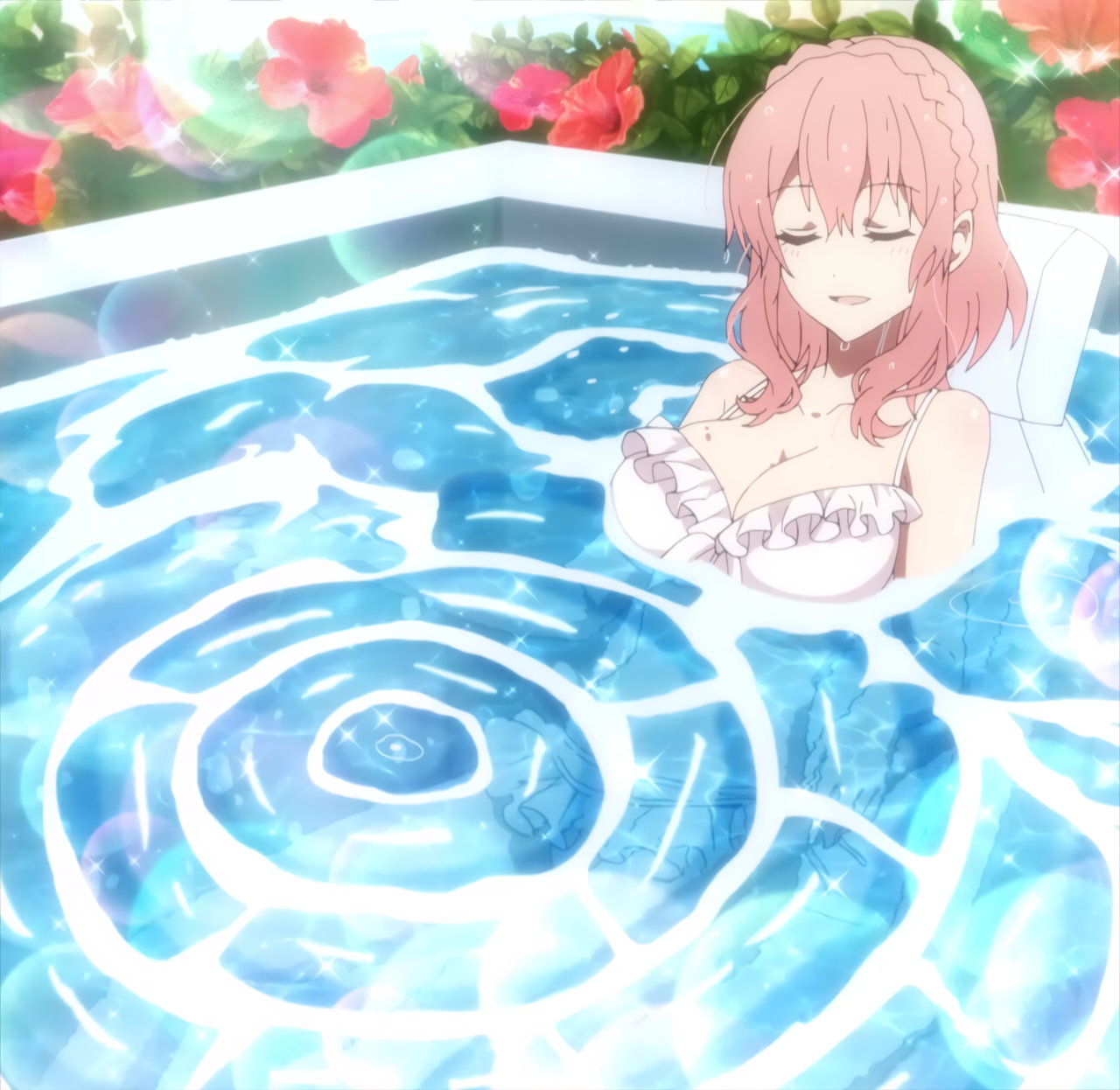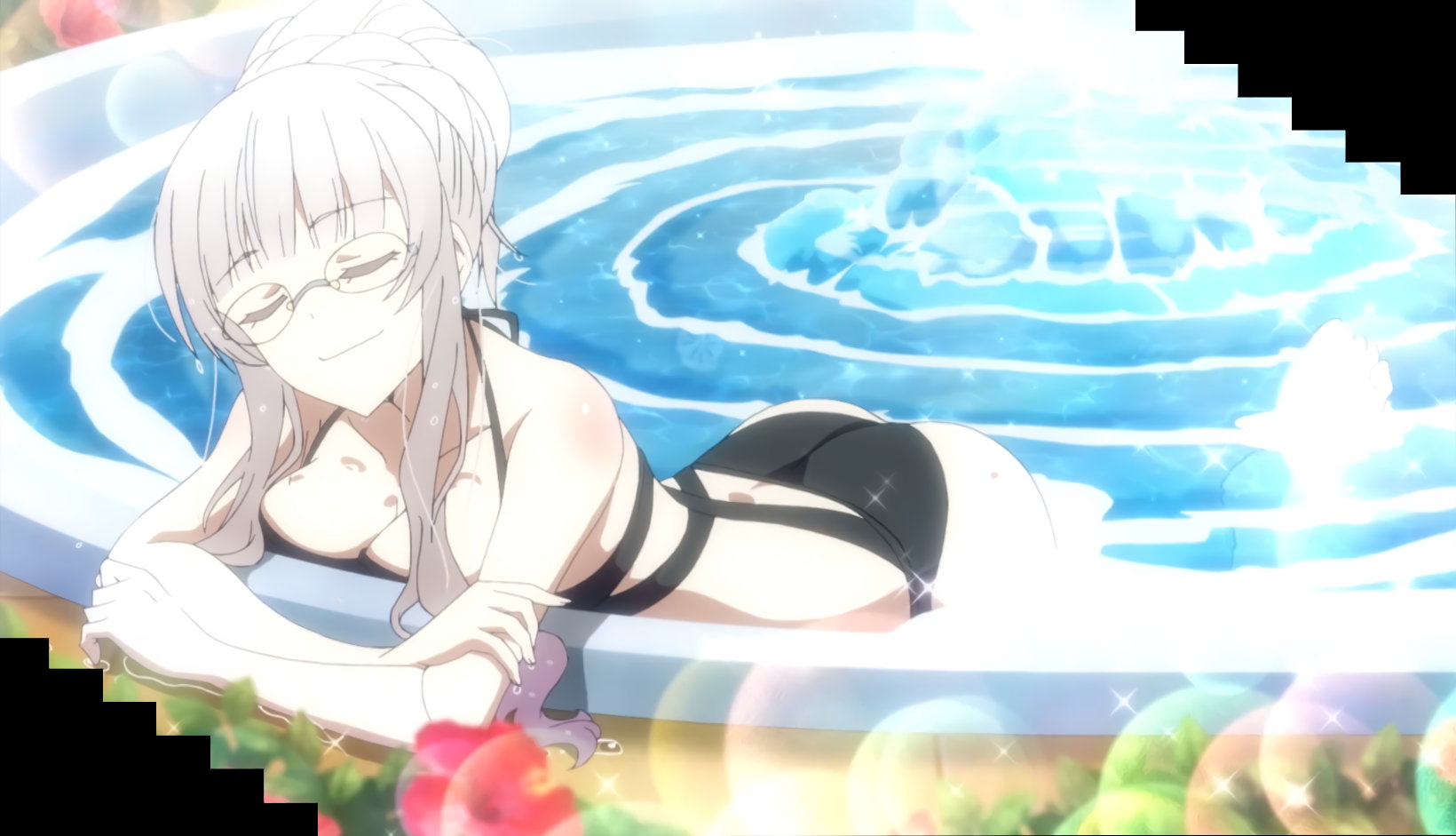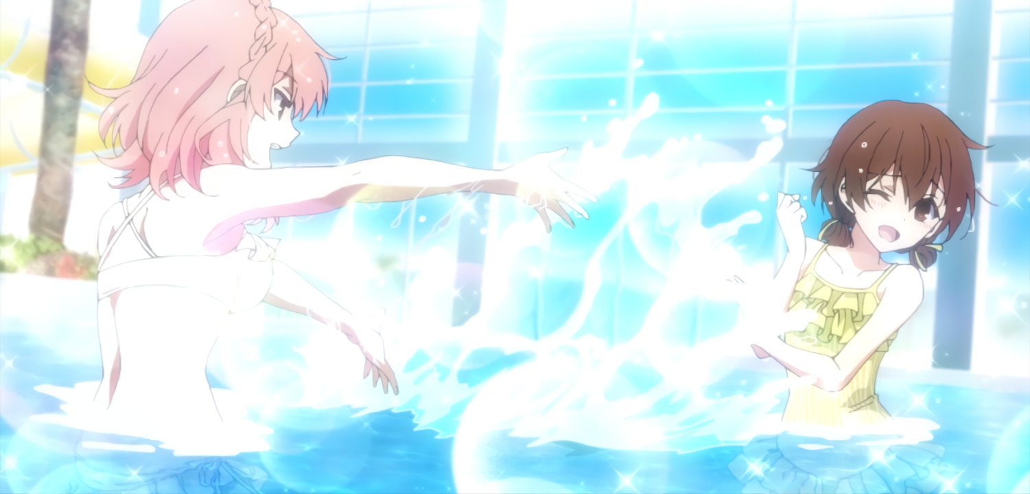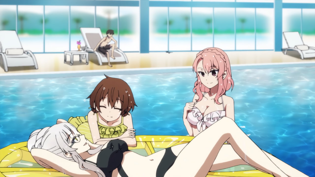 プールで水着姿のカリン/ユズ/ヒミコ。