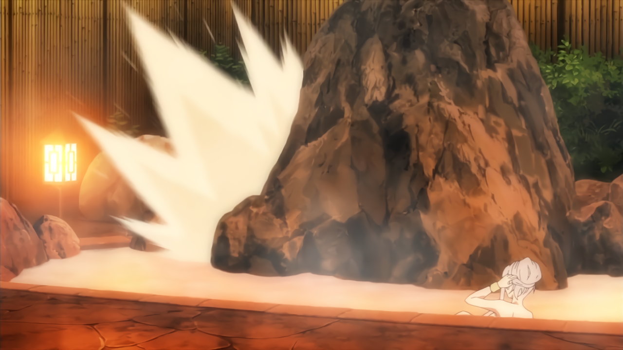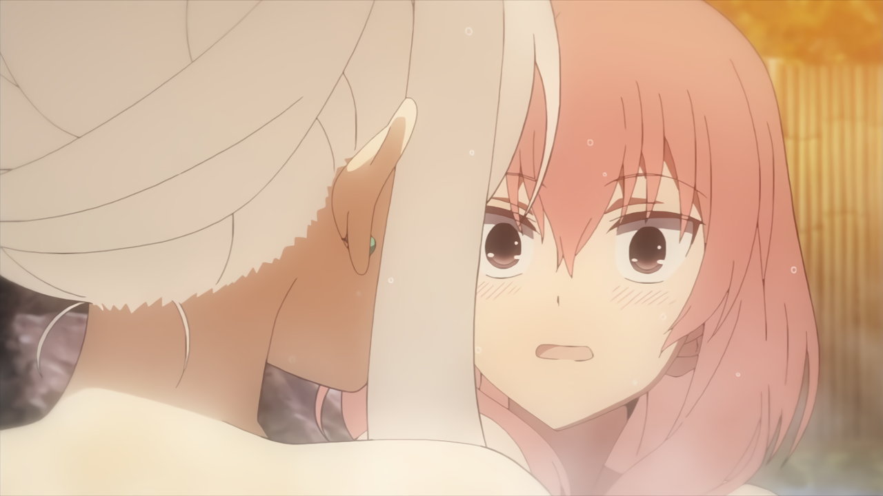 露天風呂入浴中、カリンに接近するユズ。