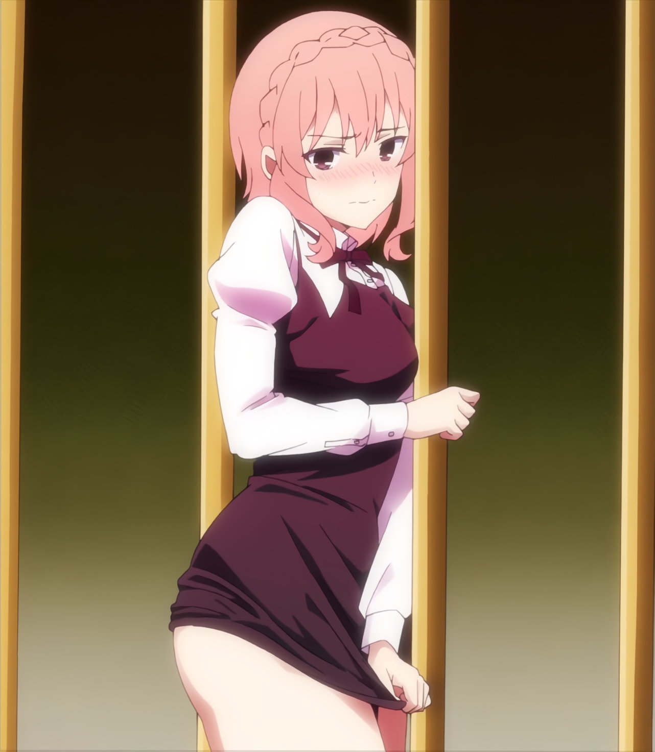 檻からの脱出を試みるカリン。しかし、巨乳と尻が柵に挟まり、抜け出せない。