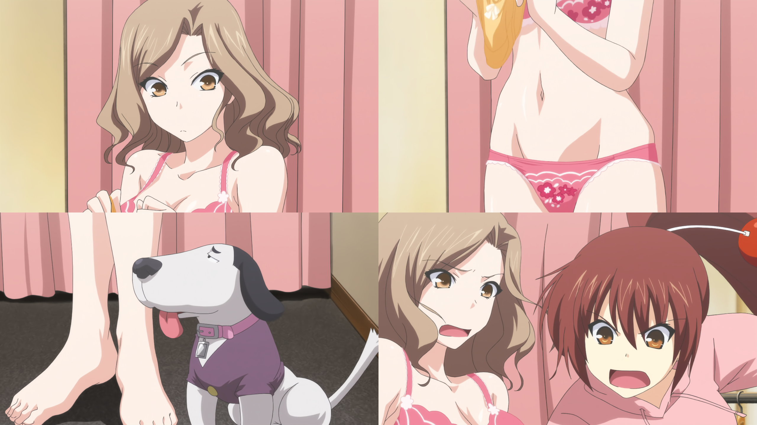 試着中・下着姿の千花。すると突然、試着室に犬と一子が乱入して来る。