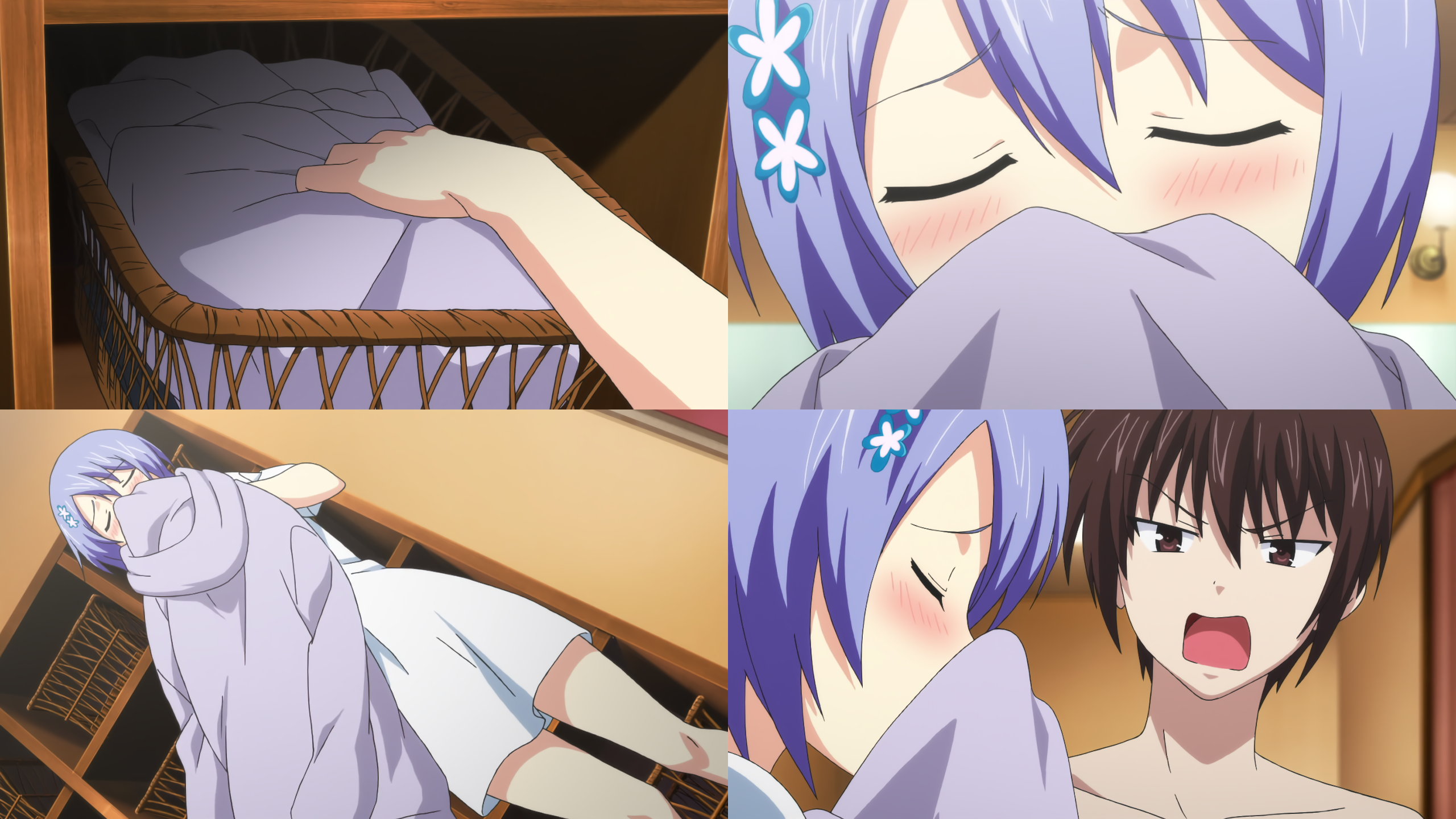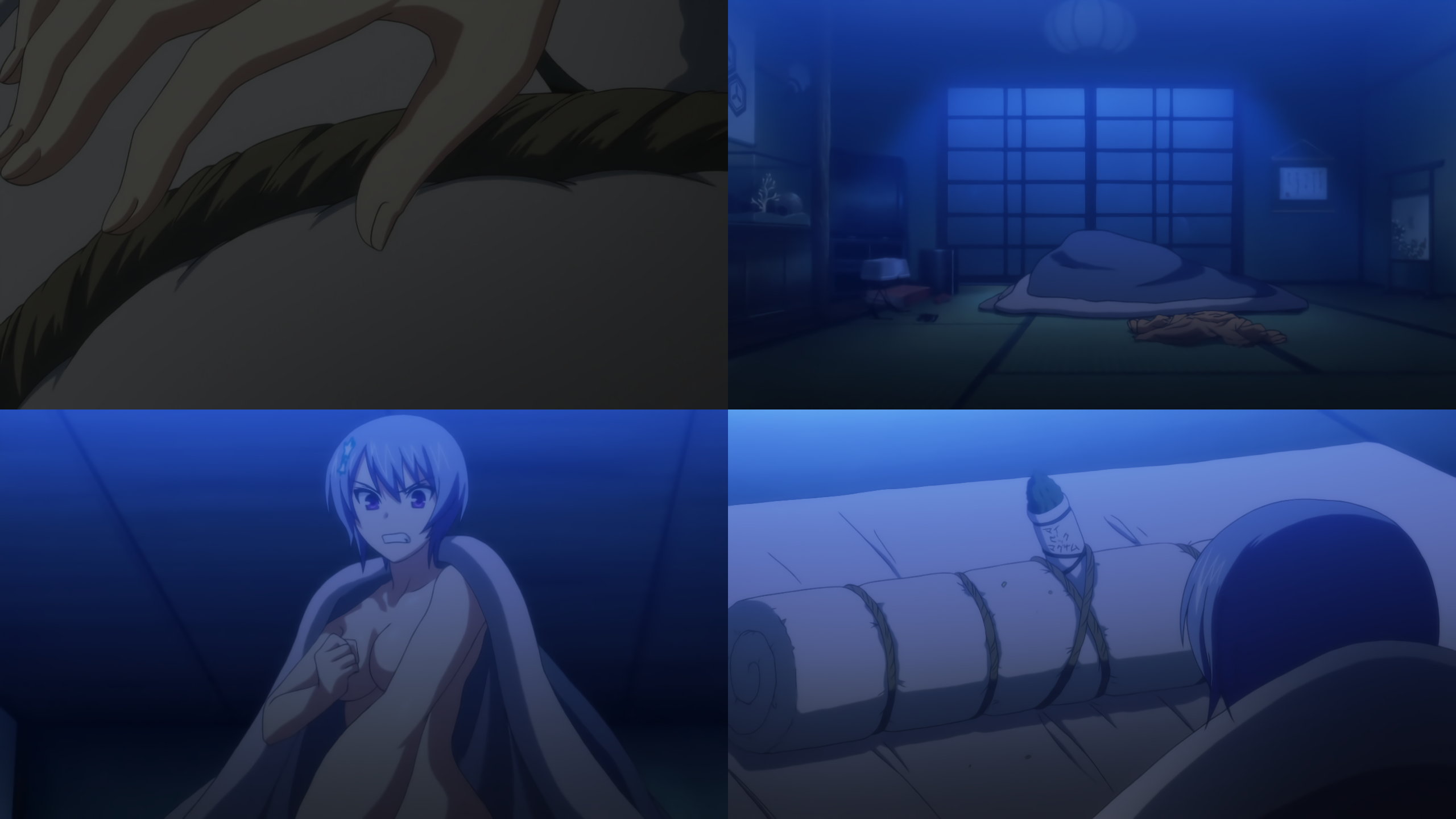 大和の寝床へ夜這いに来た京。全裸で布団に潜り込み、ダミー人形相手に一人で興奮する。