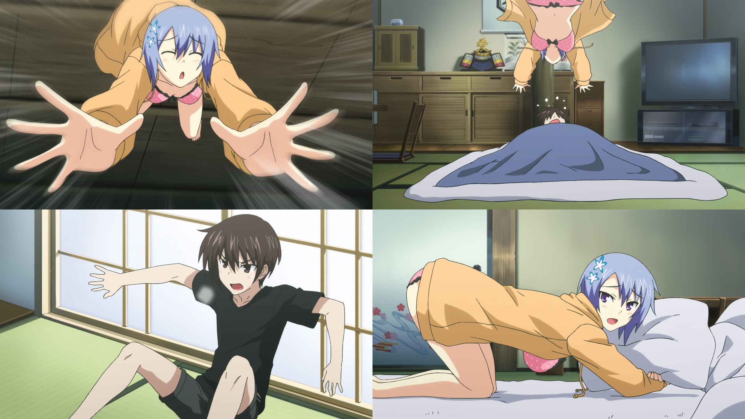 全裸で犬を追い回した末、大和の部屋に突入する女子たち。