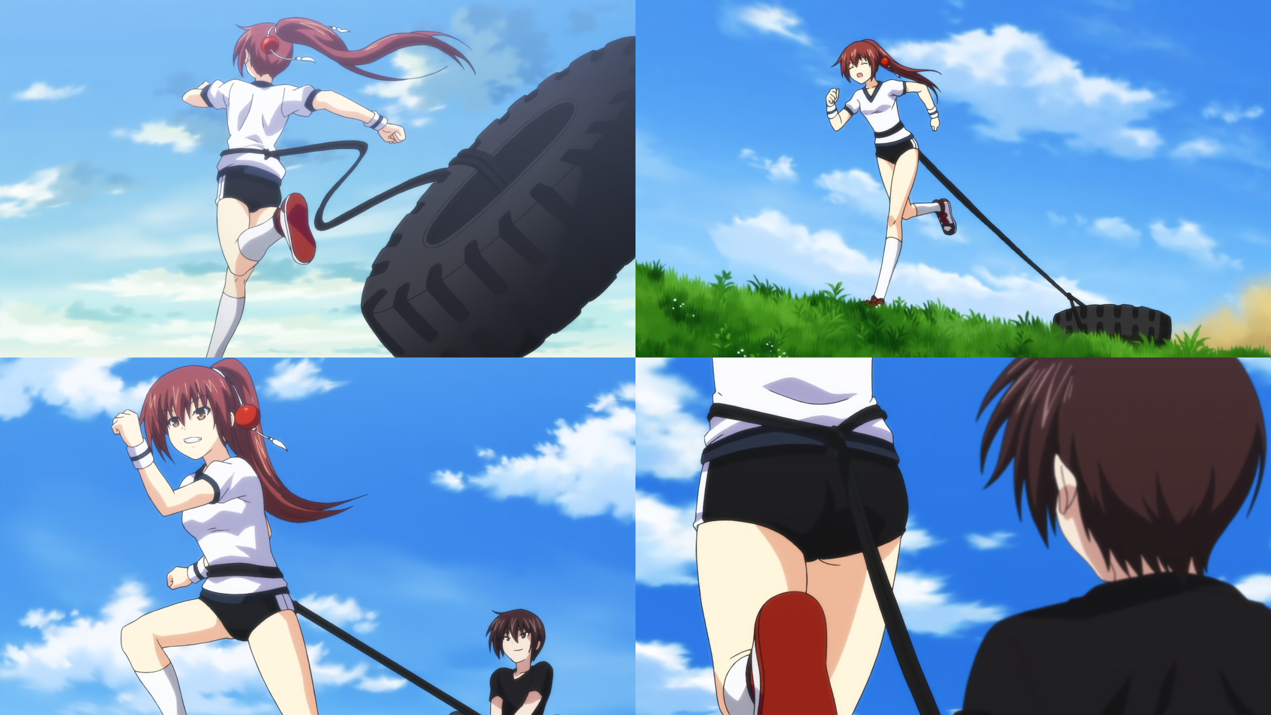 ブルマ体操服姿で走る一子。