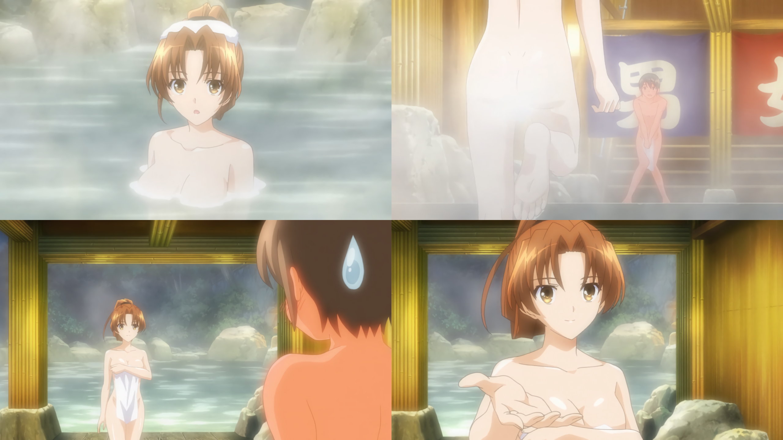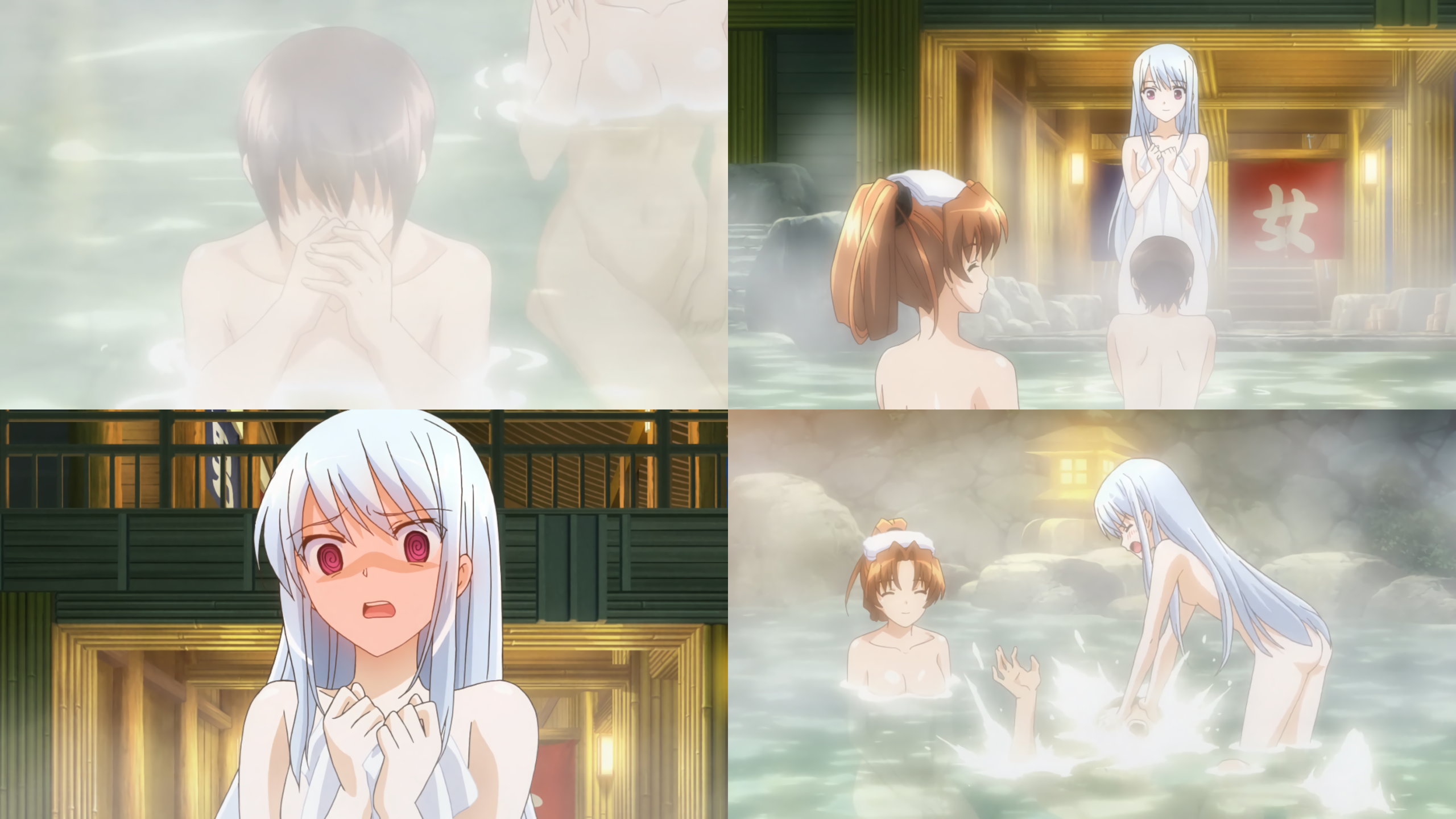 入浴直後、陽太郎の存在に気付き羞恥赤面狼狽する氷柱。