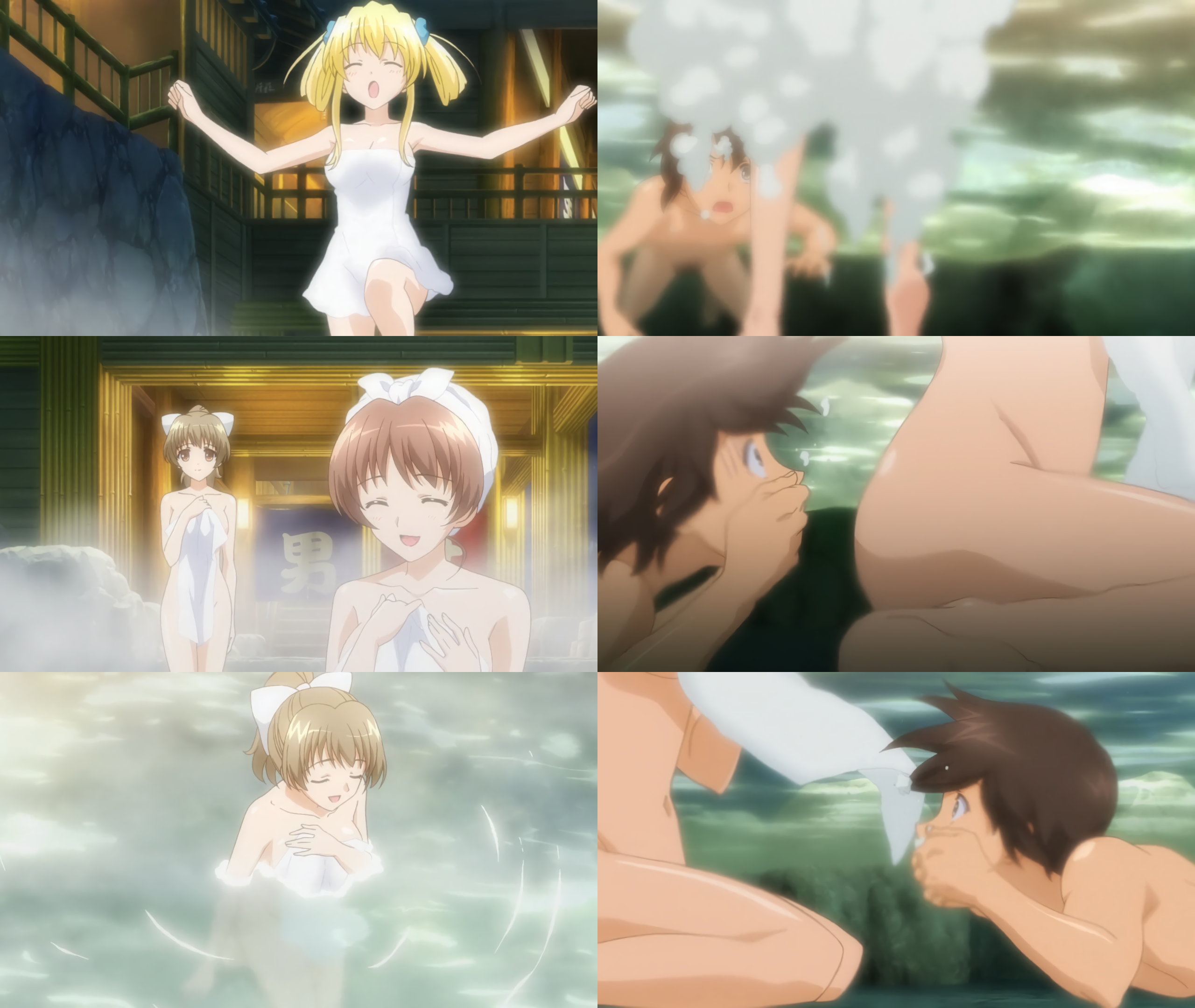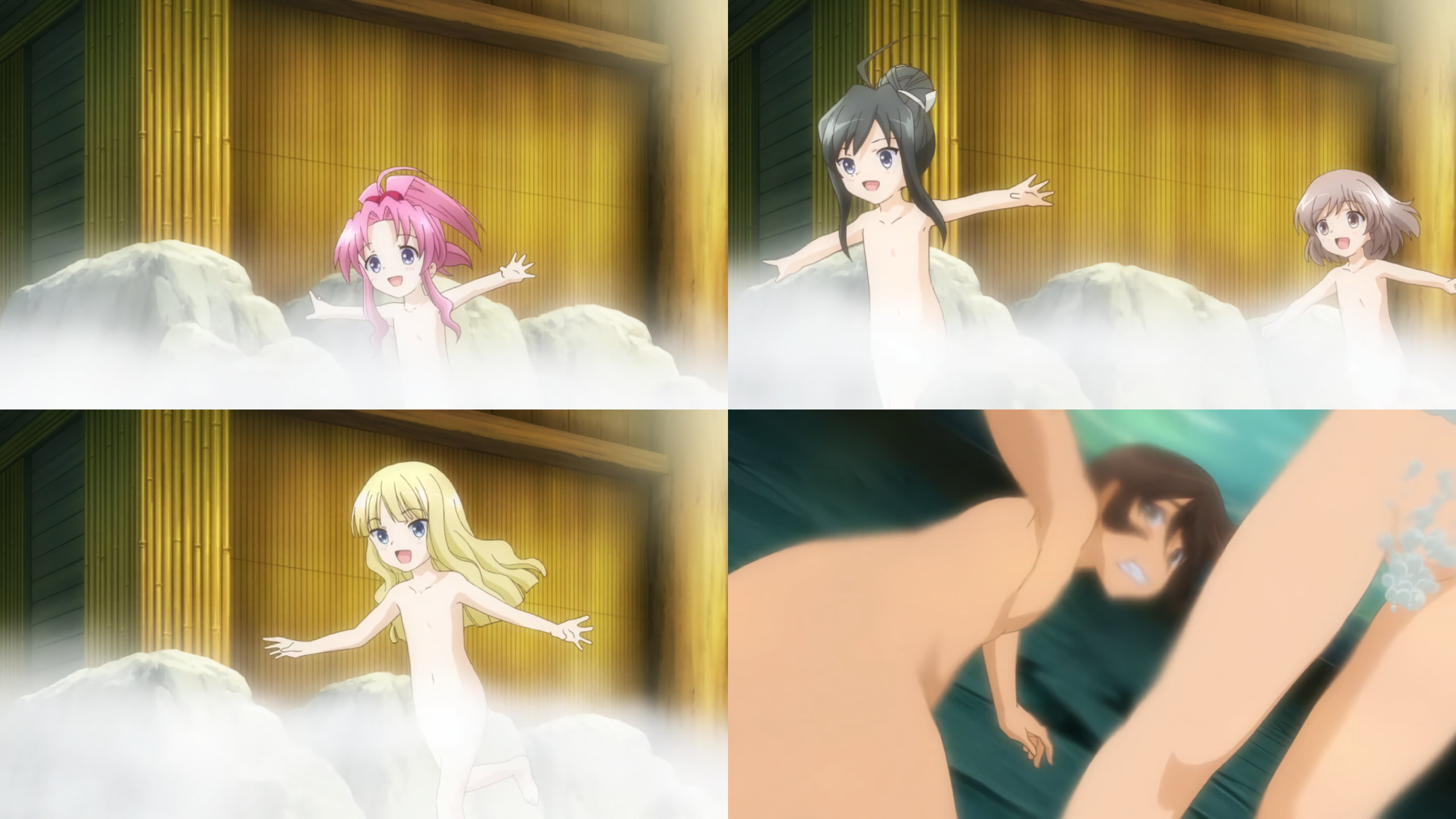 陽太郎の目の前に飛び込む全裸姉妹たち。