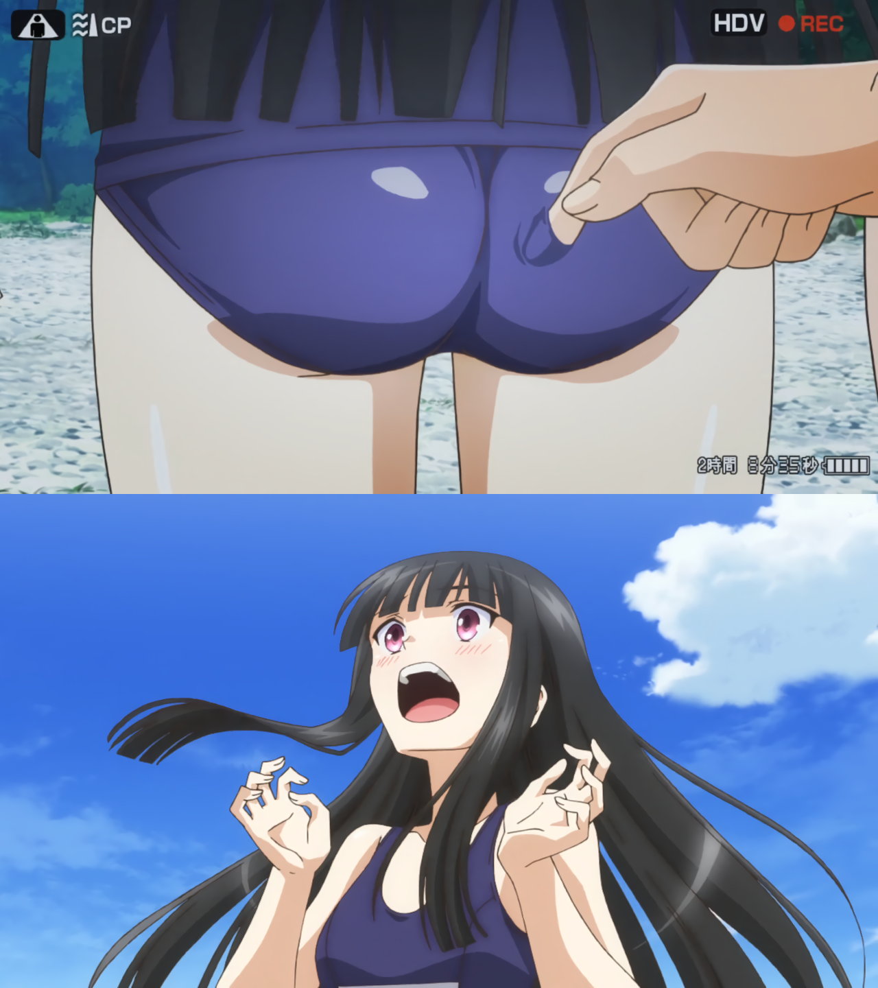 陽太郎に尻を触られる氷柱とヒカル。