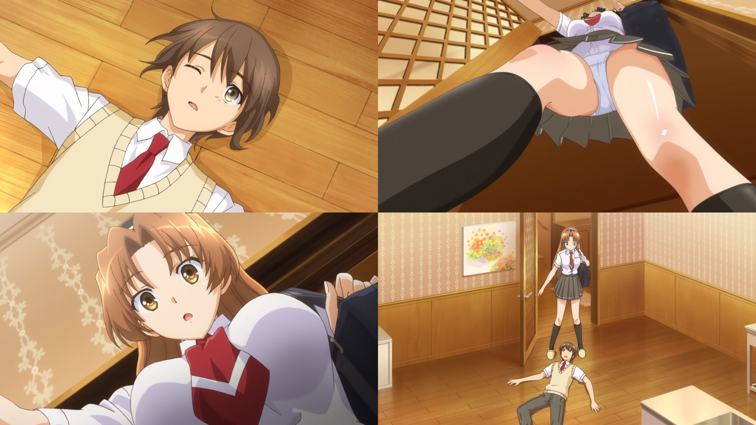 倒れた弾みにヒカルのパンツ股間を目撃する陽太郎。